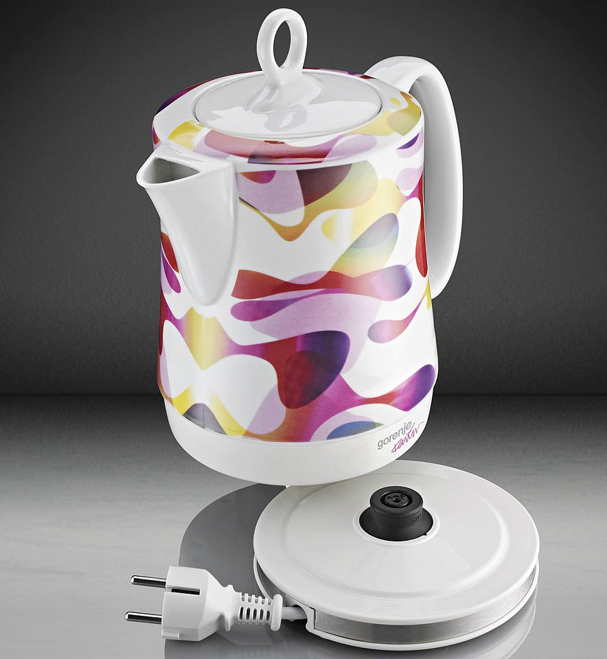 Электрический чайник от Карима Рашида K10Karim отличается современным дизайном. Керамический корпус с ярким принтом делает эту модель эксклюзивной. Защита от перегрева и автоматическое отключение гарантируют безопасность эксплуатации. Вращение на 360° обеспечивает комфорт использования чайника.