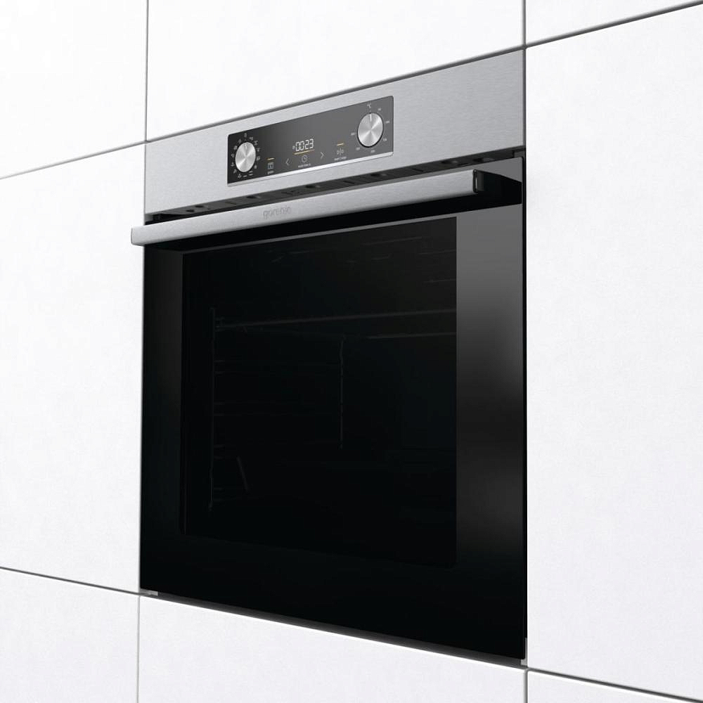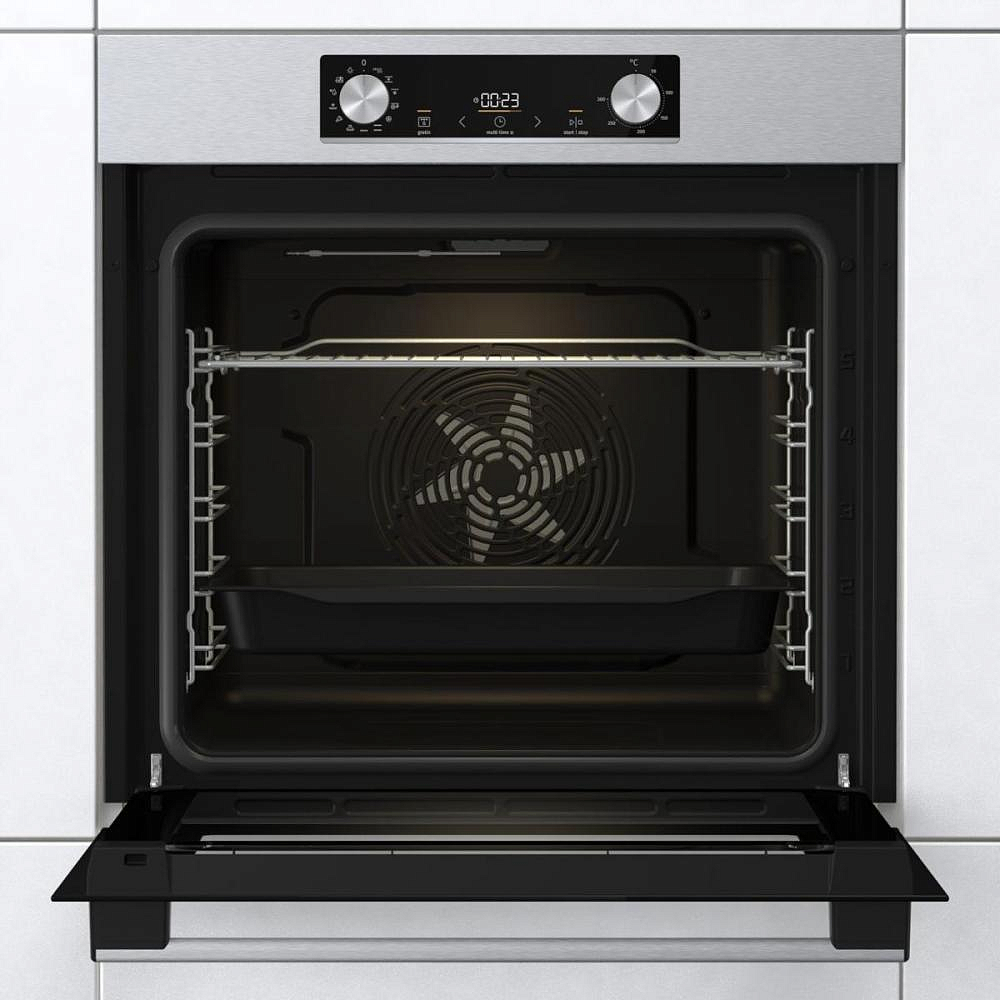 Духовой шкаф Gorenje BO6737E02X — это элегантное и функциональное устройство, произведенное в Словении. Он обладает стильным дизайном Essential, который включает панель управления из стекла и крашеного металла, а также корпус и ручку дверцы из нержавеющей стали. Это делает его не только привлекательным, но и устойчивым к коррозии и легким в уходе.