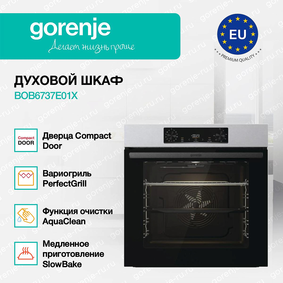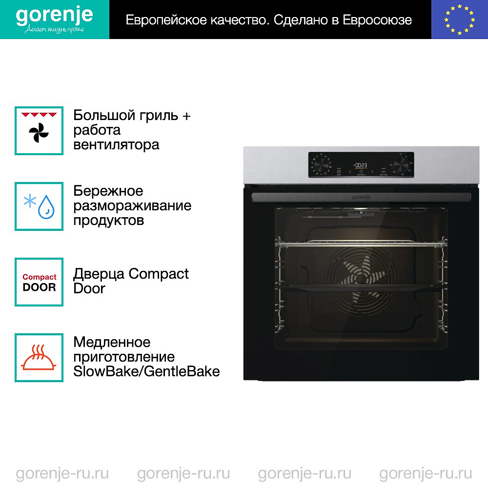 ** Все информационные материалы, представленные на Сайте, носят справочный характер и не могут в полной мере передавать достоверную информацию о свойствах, комплектации и характеристиках товара, включая цвета, размеры и формы. Фирма-производитель оставляет за собой право на внесение изменений в конструкцию, дизайн и комплектацию товара без предварительного уведомления. Перед оформлением Заказа Покупатель должен обратиться к Продавцу для уточнения свойств и характеристик Товара. Подробная информация о товаре указывается в инструкции и на упаковке товара. Используемое название в России: Горенье BOB6737E01X