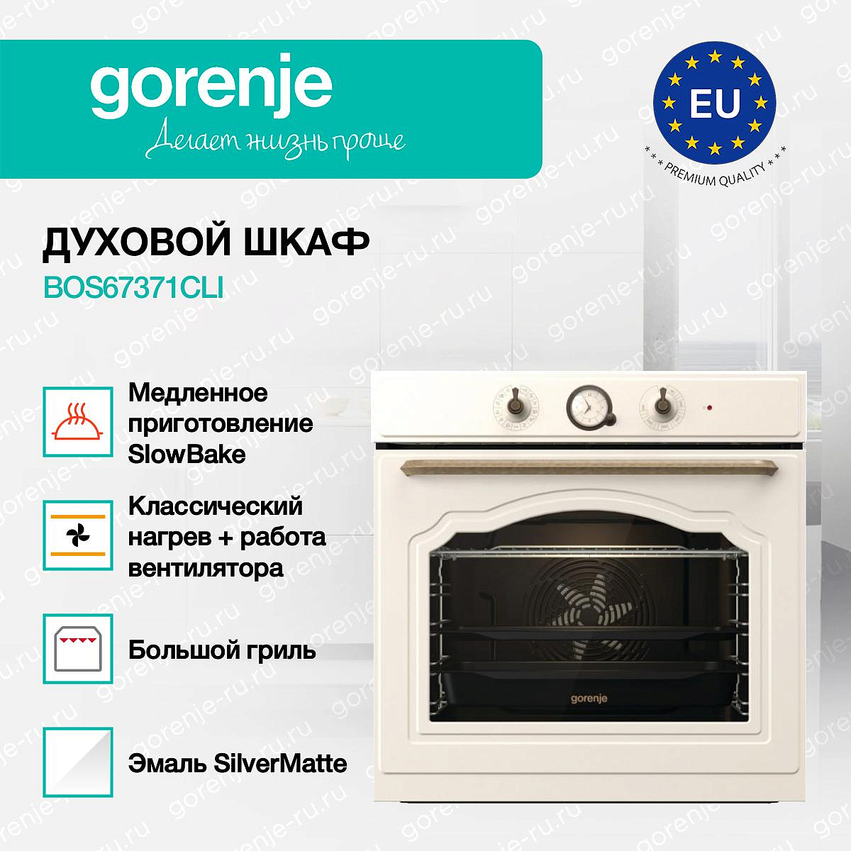 ** Все информационные материалы, представленные на Сайте, носят справочный характер и не могут в полной мере передавать достоверную информацию о свойствах, комплектации и характеристиках товара, включая цвета, размеры и формы. Фирма-производитель оставляет за собой право на внесение изменений в конструкцию, дизайн и комплектацию товара без предварительного уведомления. Перед оформлением Заказа Покупатель должен обратиться к Продавцу для уточнения свойств и характеристик Товара. Подробная информация о товаре указывается в инструкции и на упаковке товара. Используемое название в России: Горенье BOS67371CLI