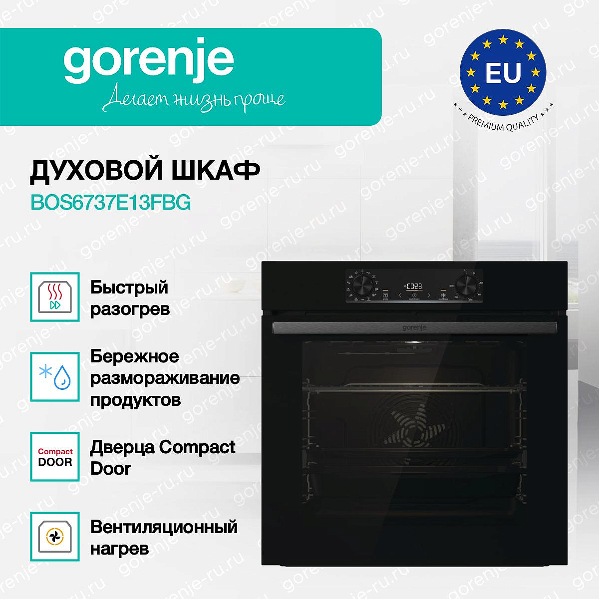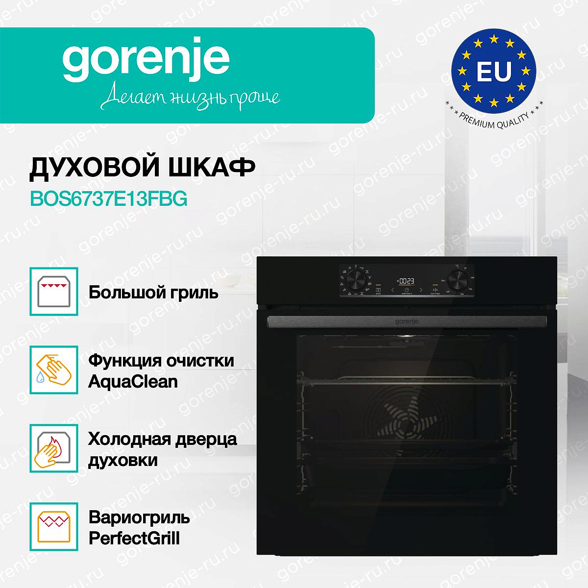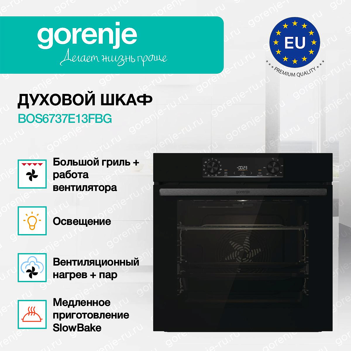 ** Все информационные материалы, представленные на Сайте, носят справочный характер и не могут в полной мере передавать достоверную информацию о свойствах, комплектации и характеристиках товара, включая цвета, размеры и формы. Фирма-производитель оставляет за собой право на внесение изменений в конструкцию, дизайн и комплектацию товара без предварительного уведомления. Перед оформлением Заказа Покупатель должен обратиться к Продавцу для уточнения свойств и характеристик Товара. Подробная информация о товаре указывается в инструкции и на упаковке товара. Используемое название в России: Горенье BOS6737E13FBG