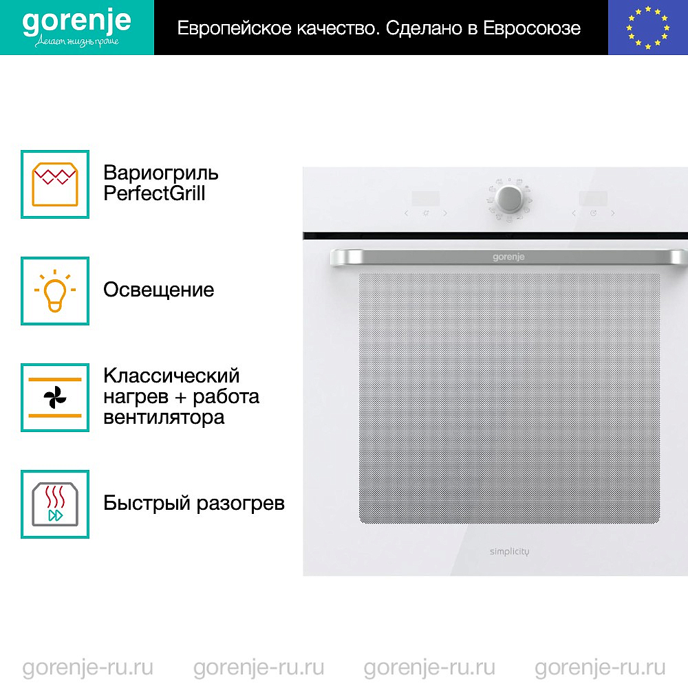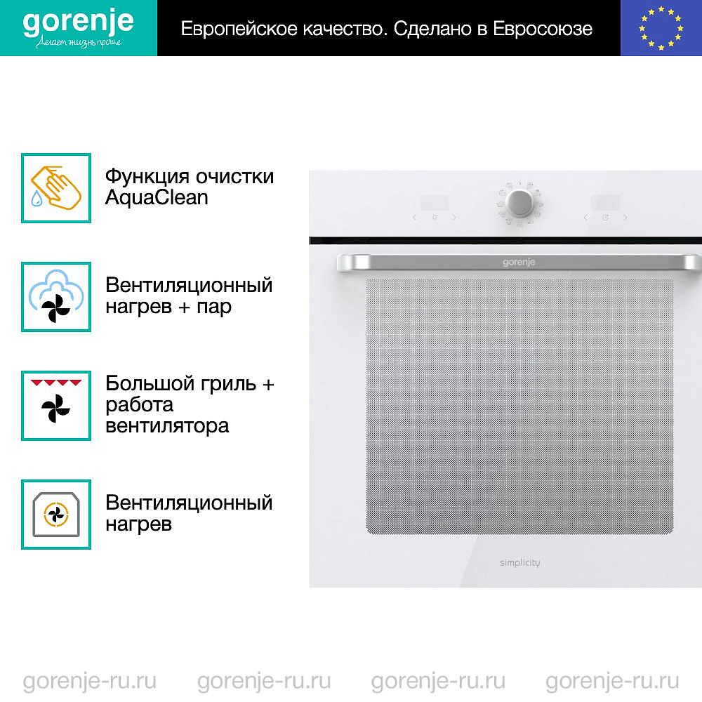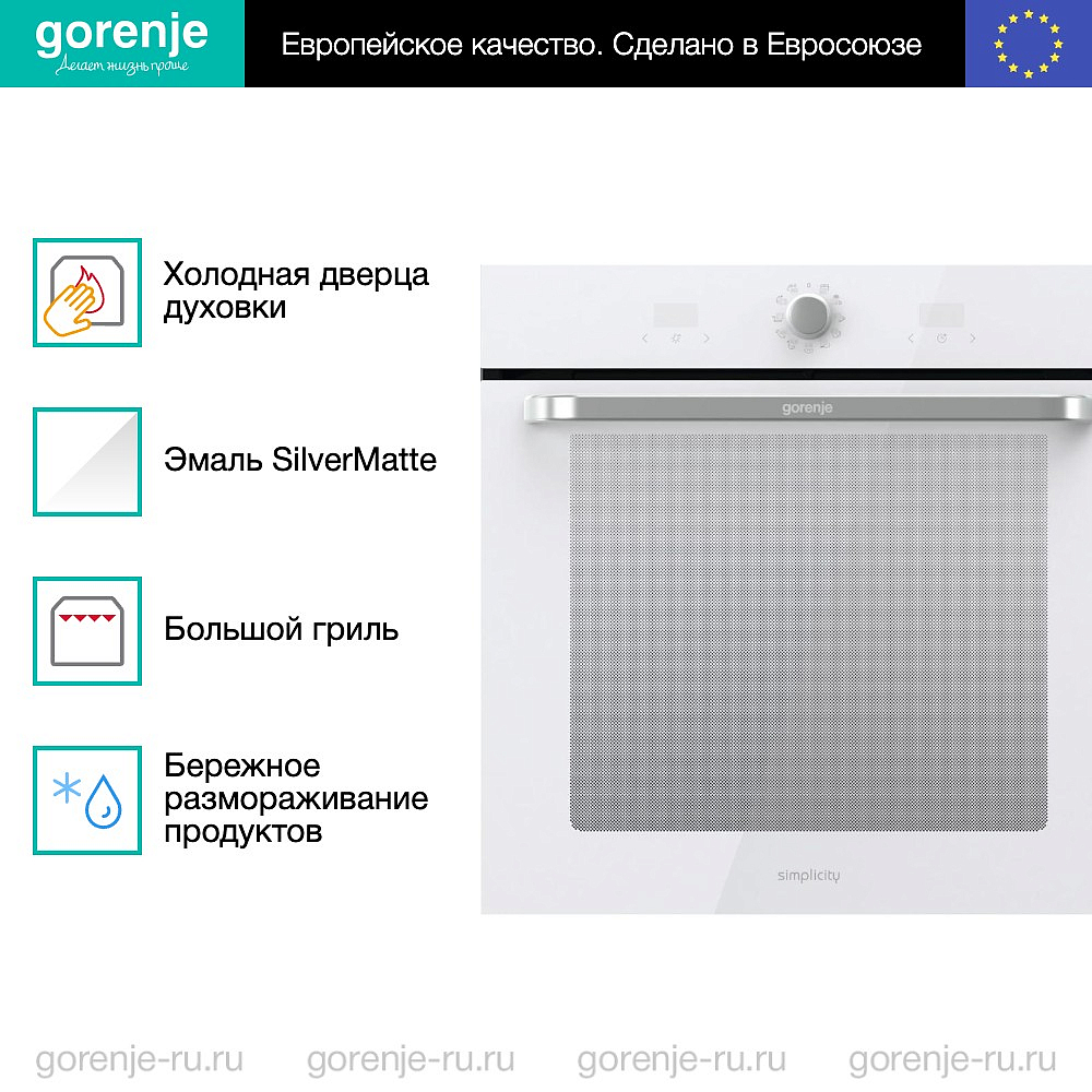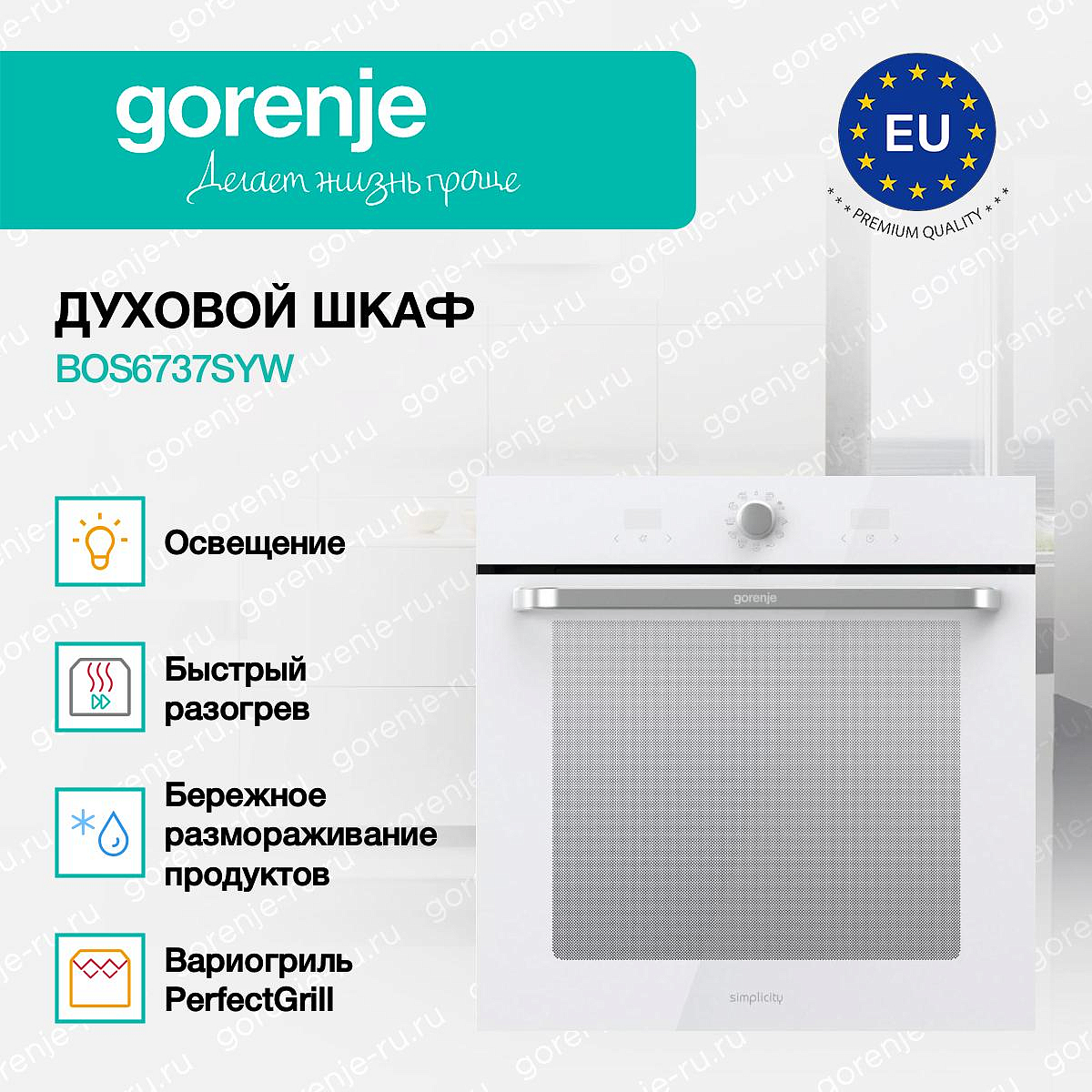 ** Все информационные материалы, представленные на Сайте, носят справочный характер и не могут в полной мере передавать достоверную информацию о свойствах, комплектации и характеристиках товара, включая цвета, размеры и формы. Фирма-производитель оставляет за собой право на внесение изменений в конструкцию, дизайн и комплектацию товара без предварительного уведомления. Перед оформлением Заказа Покупатель должен обратиться к Продавцу для уточнения свойств и характеристик Товара. Подробная информация о товаре указывается в инструкции и на упаковке товара. Используемое название в России: Горенье BOS6737SYW