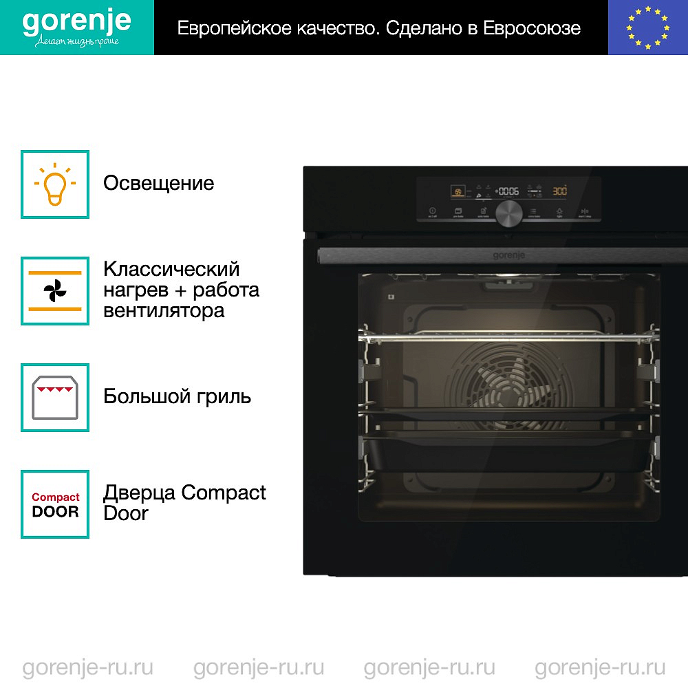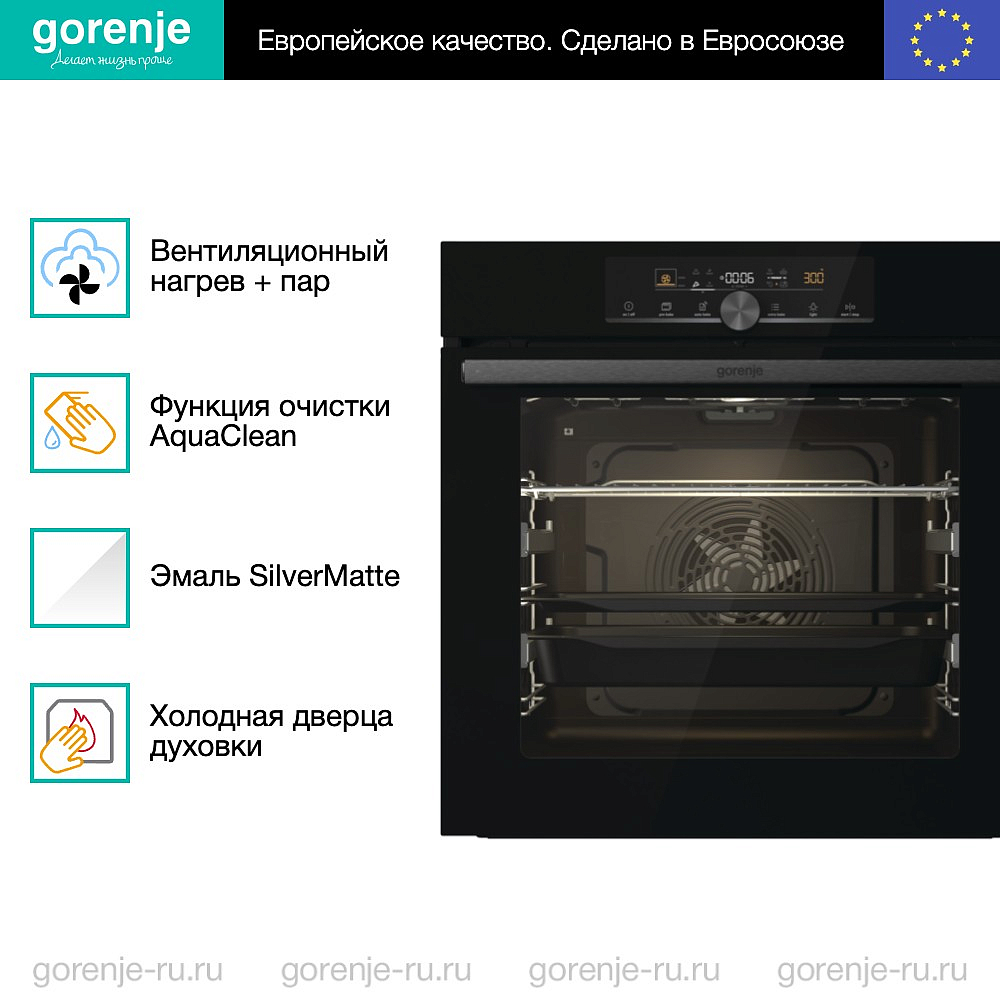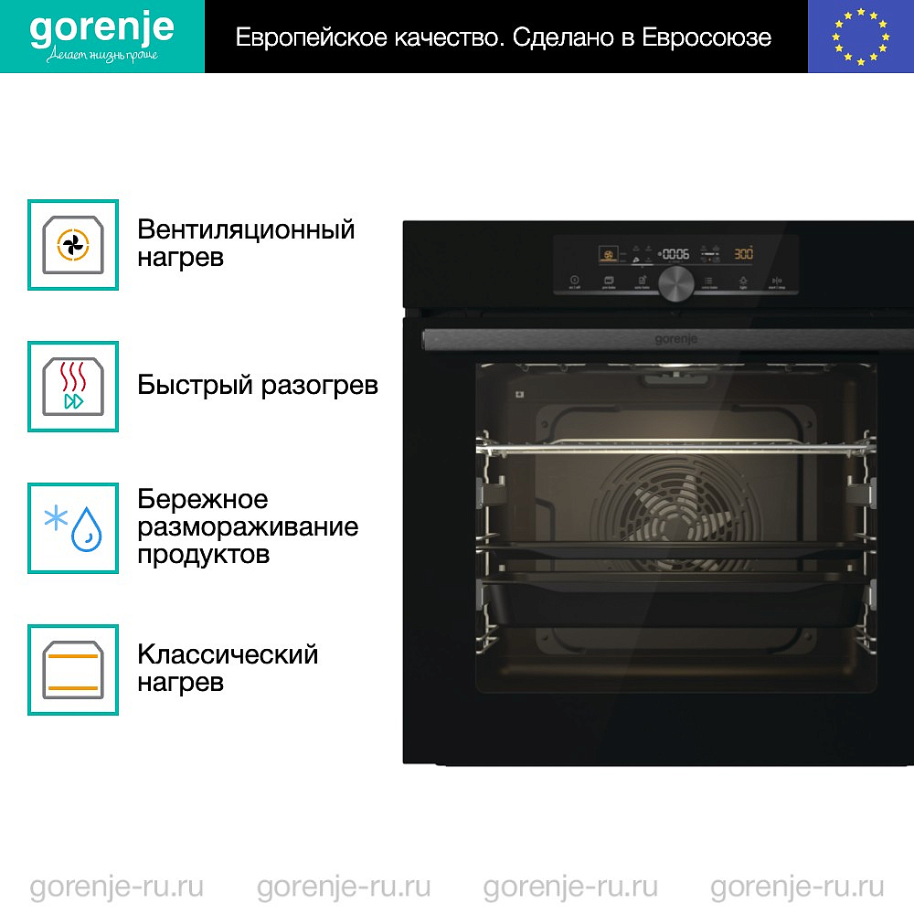 ** Все информационные материалы, представленные на Сайте, носят справочный характер и не могут в полной мере передавать достоверную информацию о свойствах, комплектации и характеристиках товара, включая цвета, размеры и формы. Фирма-производитель оставляет за собой право на внесение изменений в конструкцию, дизайн и комплектацию товара без предварительного уведомления. Перед оформлением Заказа Покупатель должен обратиться к Продавцу для уточнения свойств и характеристик Товара. Подробная информация о товаре указывается в инструкции и на упаковке товара. Используемое название в России: Горенье BOS6747A01BG