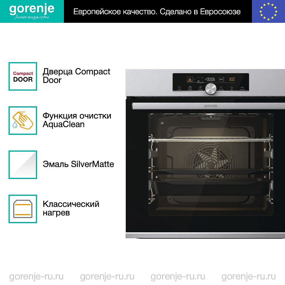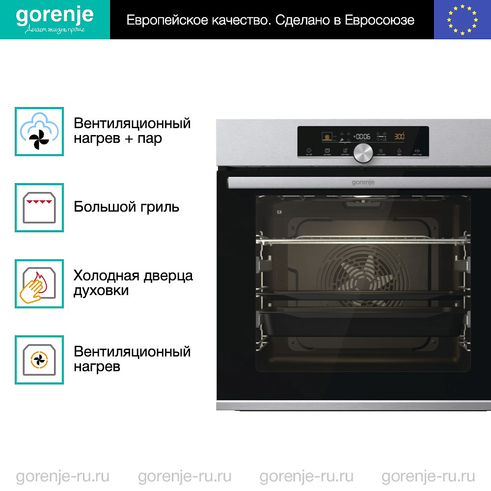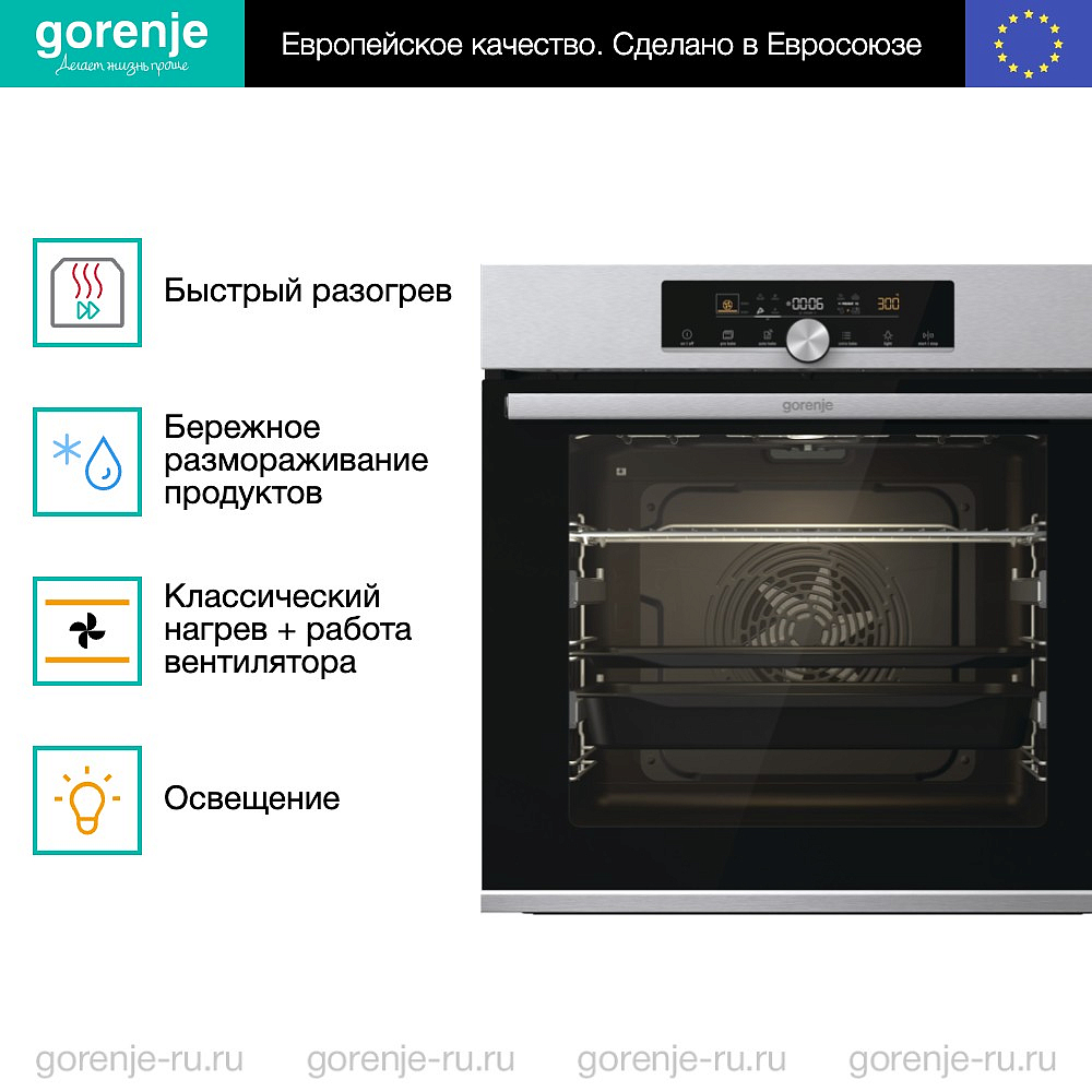 ** Все информационные материалы, представленные на Сайте, носят справочный характер и не могут в полной мере передавать достоверную информацию о свойствах, комплектации и характеристиках товара, включая цвета, размеры и формы. Фирма-производитель оставляет за собой право на внесение изменений в конструкцию, дизайн и комплектацию товара без предварительного уведомления. Перед оформлением Заказа Покупатель должен обратиться к Продавцу для уточнения свойств и характеристик Товара. Подробная информация о товаре указывается в инструкции и на упаковке товара. Используемое название в России: Горенье BOS6747A01X