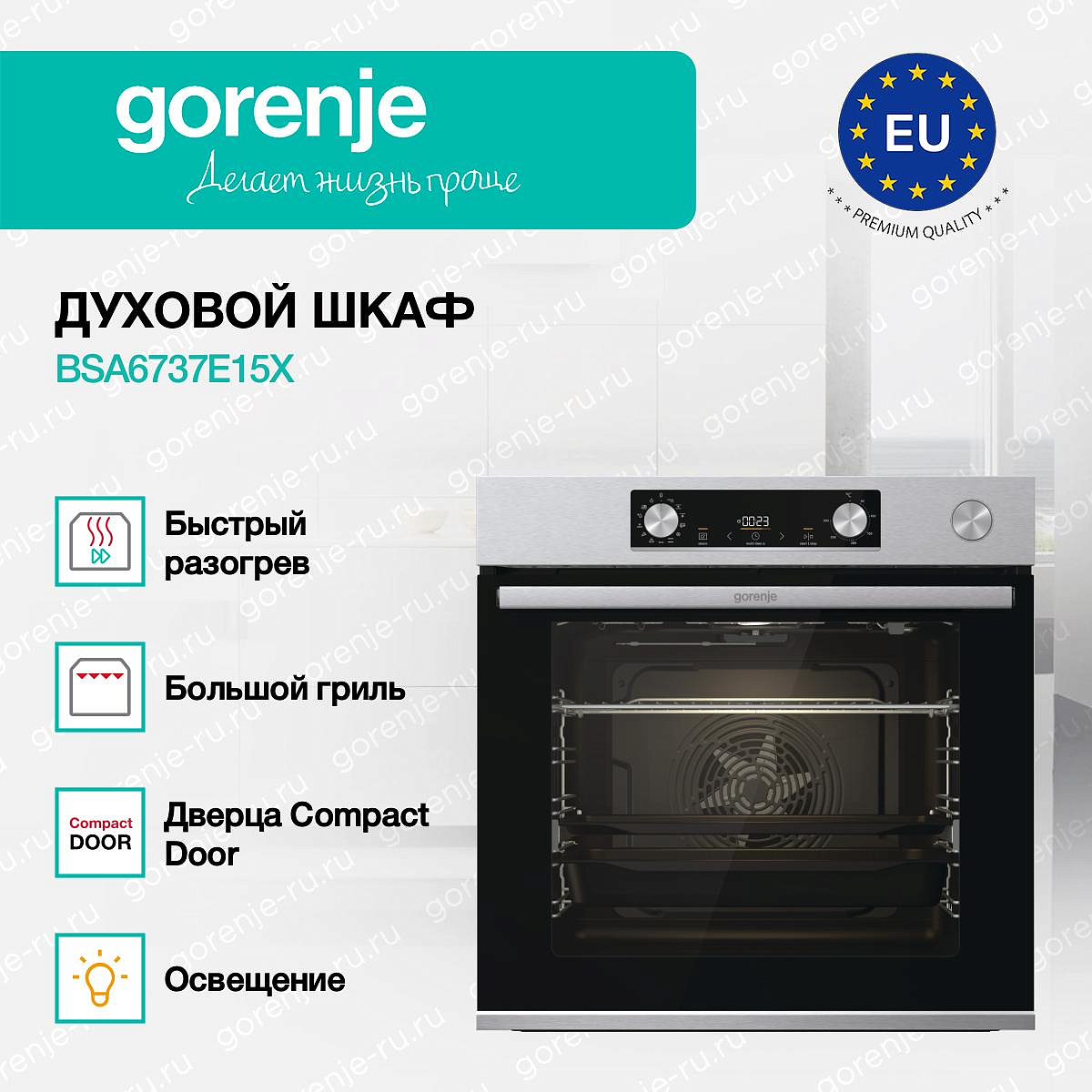 ** Все информационные материалы, представленные на Сайте, носят справочный характер и не могут в полной мере передавать достоверную информацию о свойствах, комплектации и характеристиках товара, включая цвета, размеры и формы. Фирма-производитель оставляет за собой право на внесение изменений в конструкцию, дизайн и комплектацию товара без предварительного уведомления. Перед оформлением Заказа Покупатель должен обратиться к Продавцу для уточнения свойств и характеристик Товара. Подробная информация о товаре указывается в инструкции и на упаковке товара. Используемое название в России: Горенье BSA6737E15X