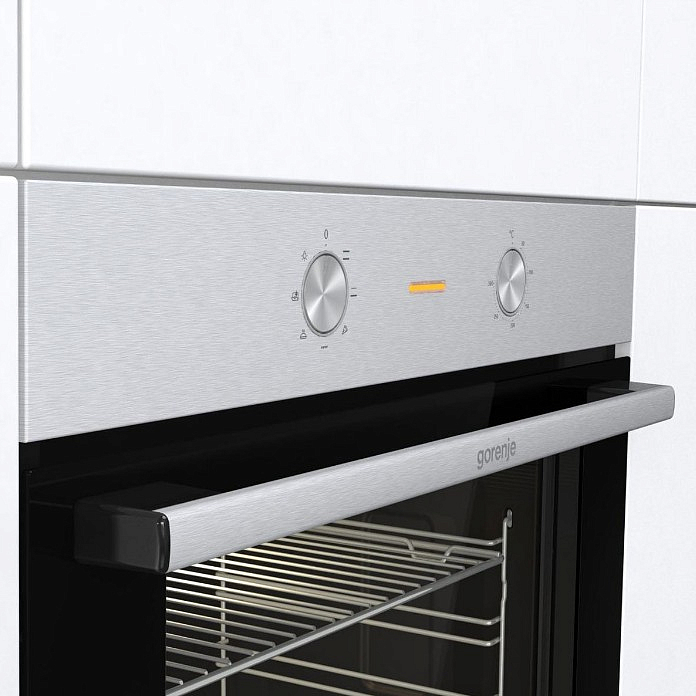 Духовой шкаф Gorenje BO6712E02XK — стильная и практичная модель из серии Essential. панель управления выполнена из нержавеющей стали, что придает элегантности внешнему облику, а благодаря защитному покрытию вам не нужно беспокоиться что на ней останутся отпечатки пальцев и поддерживать чистоту будет намного легче. Поворотные переключатели помогут выбрать необходимые настройки, а в случае необходимости они могут утапливаться.