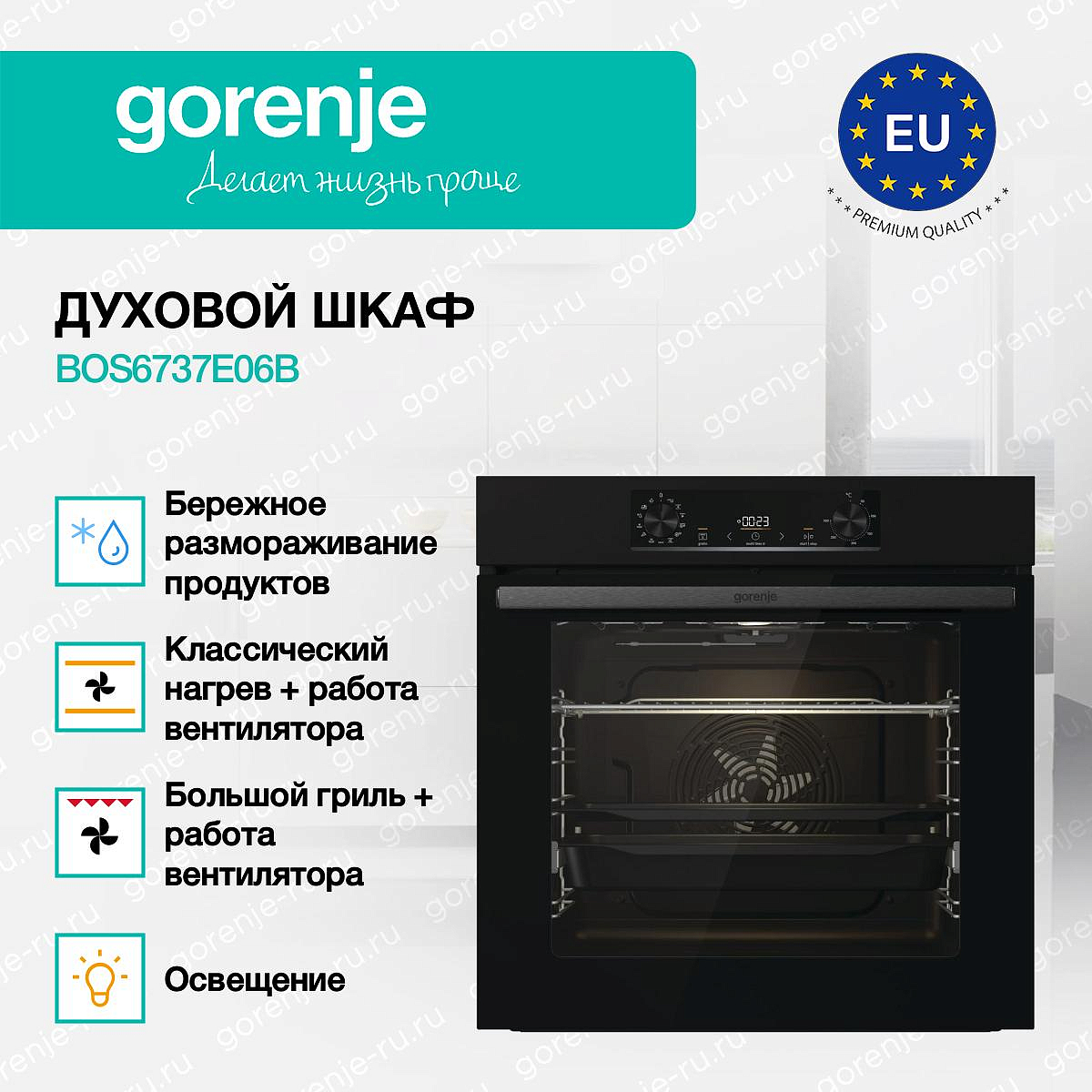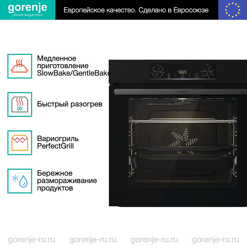 ** Все информационные материалы, представленные на Сайте, носят справочный характер и не могут в полной мере передавать достоверную информацию о свойствах, комплектации и характеристиках товара, включая цвета, размеры и формы. Фирма-производитель оставляет за собой право на внесение изменений в конструкцию, дизайн и комплектацию товара без предварительного уведомления. Перед оформлением Заказа Покупатель должен обратиться к Продавцу для уточнения свойств и характеристик Товара. Подробная информация о товаре указывается в инструкции и на упаковке товара. Используемое название в России: Горенье BOS6737E06B