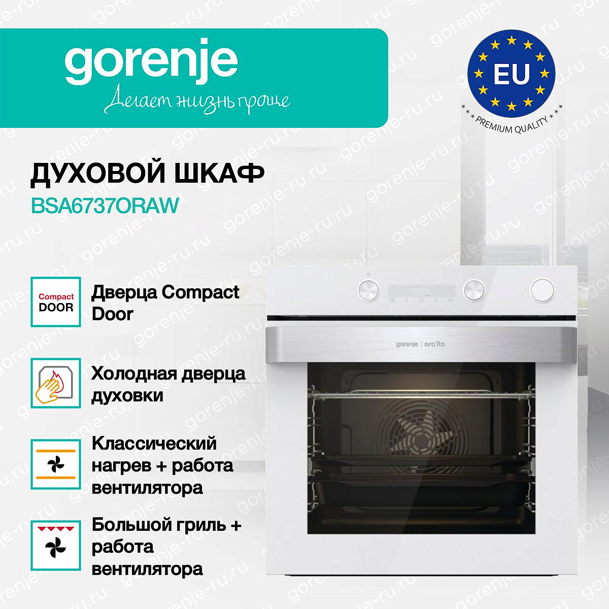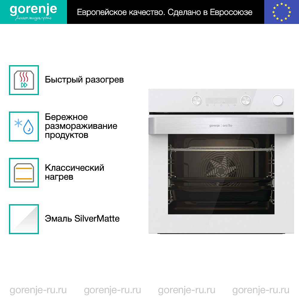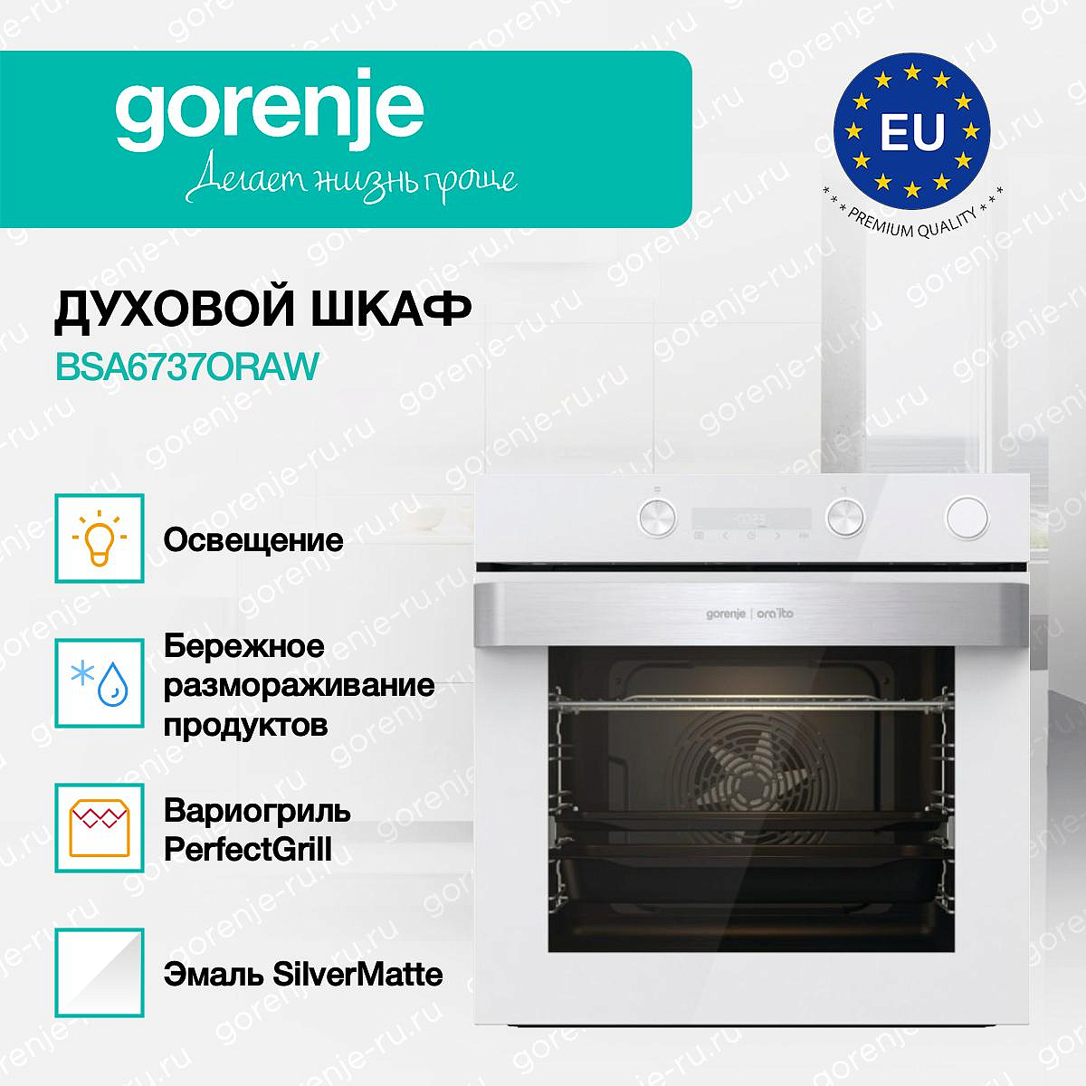 ** Все информационные материалы, представленные на Сайте, носят справочный характер и не могут в полной мере передавать достоверную информацию о свойствах, комплектации и характеристиках товара, включая цвета, размеры и формы. Фирма-производитель оставляет за собой право на внесение изменений в конструкцию, дизайн и комплектацию товара без предварительного уведомления. Перед оформлением Заказа Покупатель должен обратиться к Продавцу для уточнения свойств и характеристик Товара. Подробная информация о товаре указывается в инструкции и на упаковке товара. Используемое название в России: Горенье BSA6737ORAW