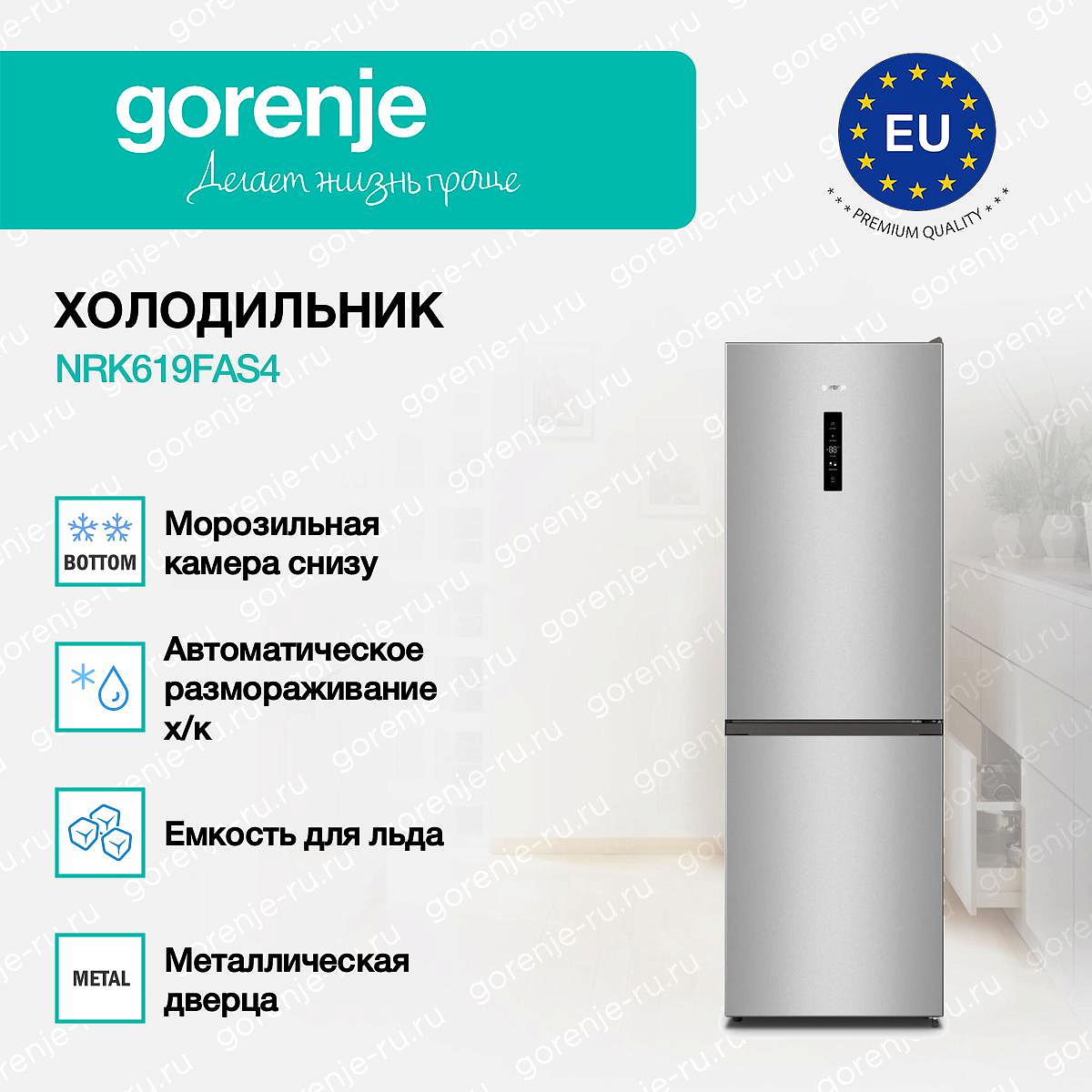 ** Все информационные материалы, представленные на Сайте, носят справочный характер и не могут в полной мере передавать достоверную информацию о свойствах, комплектации и характеристиках товара, включая цвета, размеры и формы. Фирма-производитель оставляет за собой право на внесение изменений в конструкцию, дизайн и комплектацию товара без предварительного уведомления. Перед оформлением Заказа Покупатель должен обратиться к Продавцу для уточнения свойств и характеристик Товара. Подробная информация о товаре указывается в инструкции и на упаковке товара. Используемое название в России: Горенье NRK619FAS4