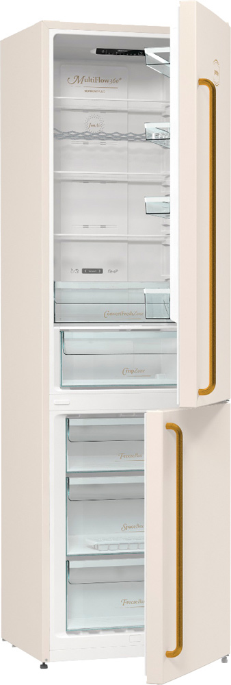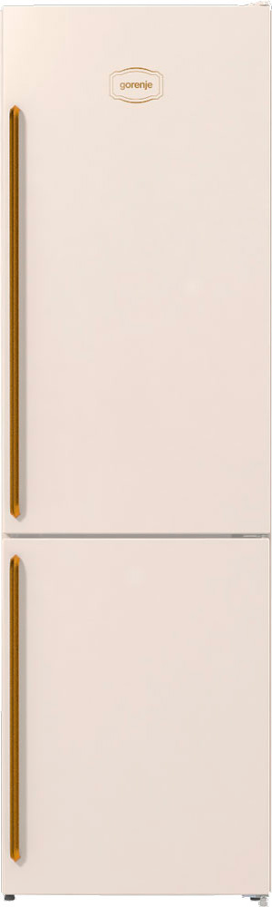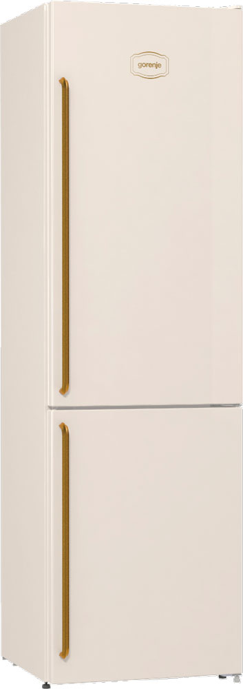 Холодильник Gorenje NRK6202CLI представлен в бежевом цвете. Время поддержания температуры при отключении электроэнергии составляет около 17 часов. Продлить срок свежести продуктов, таких как рыба и мясо, позволит контейнер FreshZone, в нем количество градусов ниже, чем в общей части холодильного отделения.