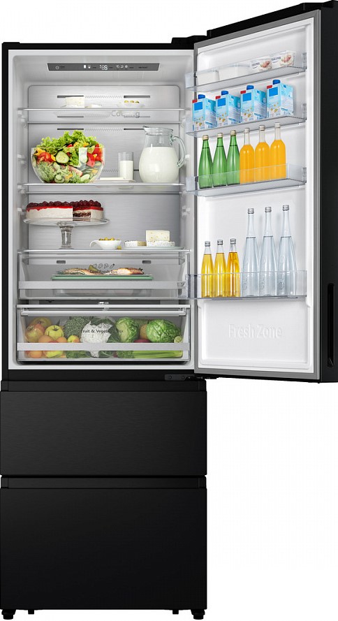 Цифровой дисплей позволяет точно контролировать и регулировать температуру внутри холодильника. Он обеспечивает интуитивный доступ к настройкам и показывает текущую температуру в каждой зоне охлаждения. Дисплей улучшает пользовательский опыт, делая управление устройством более простым и удобным, особенно при наличии дополнительных функций.