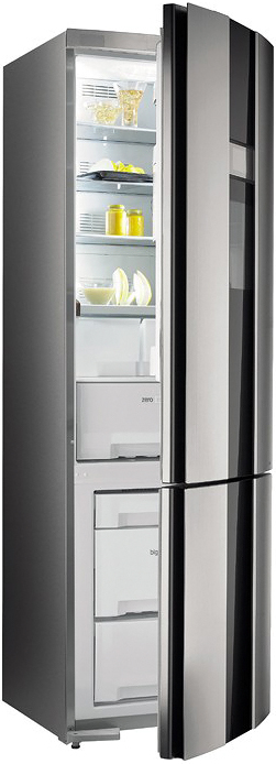 Внутри — продуманная организация пространства. Общий объём 352 л (полезный — 320 л) разделён на холодильную камеру (245 л полезного объёма) с тремя стеклянными полками, полкой-подставкой MultiShelf для бутылок, двумя ящиками для овощей и фруктов, а также специальной зоной ZeroZone для скоропортящихся продуктов. Дверные секции оснащены ограничителем BottleHolder, надёжно фиксирующим бутылки. Лоток для яиц и ледяных кубиков рассчитан на 12 штук.
