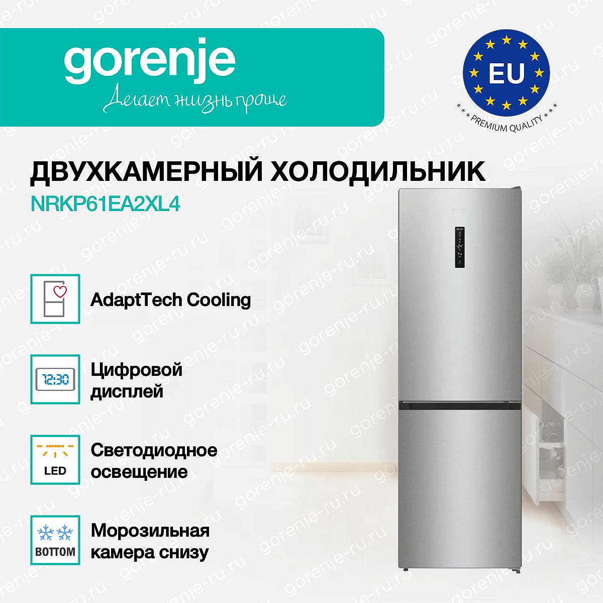 Отдельностоящий двухкамерный холодильник Gorenje NRKP61EA2XL4 — это сочетание стильного дизайна и продуманных функций. Этот модельный ряд бытовой техники производится в Сербии и обладает гарантией 1 год, а также дополнительным годом сервисного обслуживания.