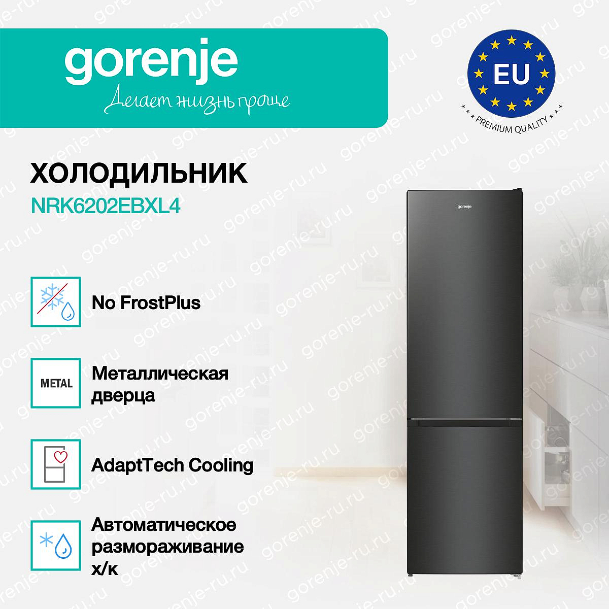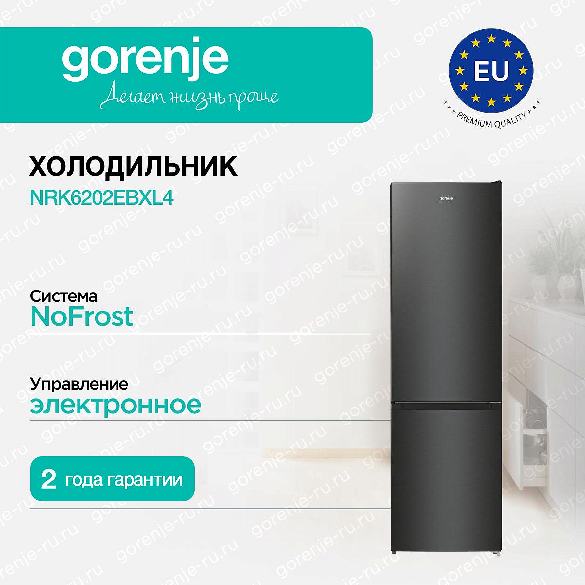 ** Все информационные материалы, представленные на Сайте, носят справочный характер и не могут в полной мере передавать достоверную информацию о свойствах, комплектации и характеристиках товара, включая цвета, размеры и формы. Фирма-производитель оставляет за собой право на внесение изменений в конструкцию, дизайн и комплектацию товара без предварительного уведомления. Перед оформлением Заказа Покупатель должен обратиться к Продавцу для уточнения свойств и характеристик Товара. Подробная информация о товаре указывается в инструкции и на упаковке товара. Используемое название в России: Горенье NRK6202EBXL4