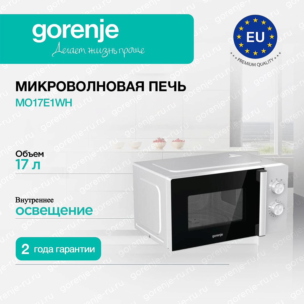 ** Все информационные материалы, представленные на Сайте, носят справочный характер и не могут в полной мере передавать достоверную информацию о свойствах, комплектации и характеристиках товара, включая цвета, размеры и формы. Фирма-производитель оставляет за собой право на внесение изменений в конструкцию, дизайн и комплектацию товара без предварительного уведомления. Перед оформлением Заказа Покупатель должен обратиться к Продавцу для уточнения свойств и характеристик Товара. Подробная информация о товаре указывается в инструкции и на упаковке товара. Используемое название в России: Горенье MO17E1WH