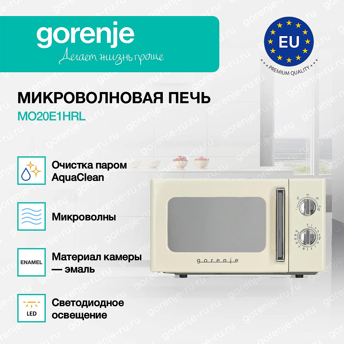 ** Все информационные материалы, представленные на Сайте, носят справочный характер и не могут в полной мере передавать достоверную информацию о свойствах, комплектации и характеристиках товара, включая цвета, размеры и формы. Фирма-производитель оставляет за собой право на внесение изменений в конструкцию, дизайн и комплектацию товара без предварительного уведомления. Перед оформлением Заказа Покупатель должен обратиться к Продавцу для уточнения свойств и характеристик Товара. Подробная информация о товаре указывается в инструкции и на упаковке товара. Используемое название в России: Горенье MO20E1HRL