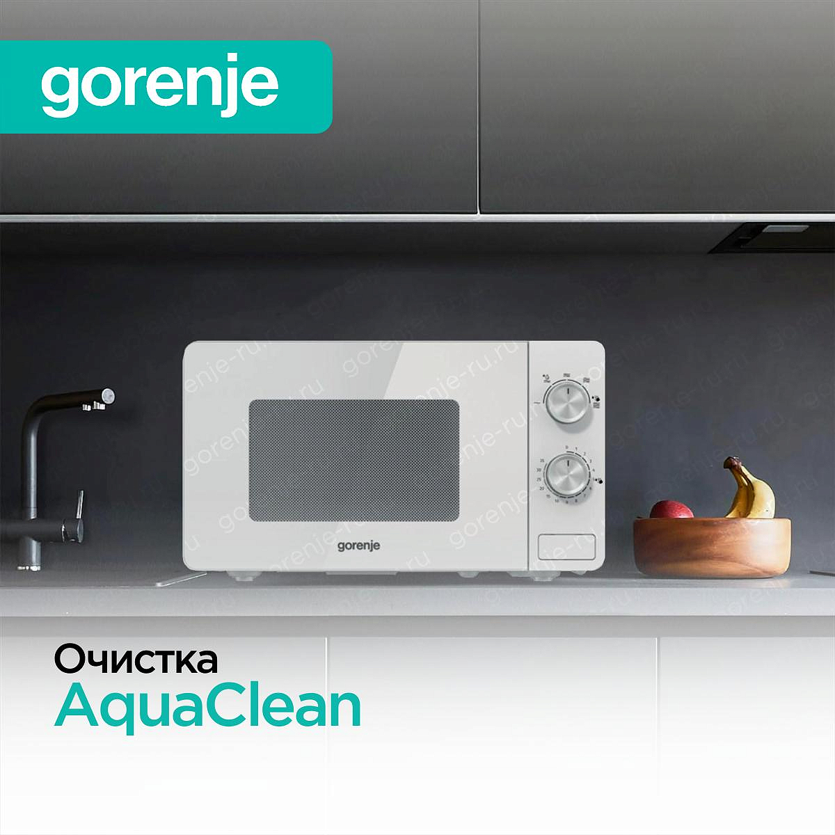 Функция AquaClean в микроволновках Gorenje — это умная очистка паром для лёгкого удаления жира и нагара. Достаточно налить воду в специальную ёмкость (или просто в чашу), запустить программу — печь нагреет воду, создавая пар, который размягчит загрязнения за 10–15 минут. После — просто протрите камеру мягкой тряпкой, без агрессивных средств. Экологично, безопасно для покрытия и экономит время. Особенно удобна после готовки с брызгами или запекания.