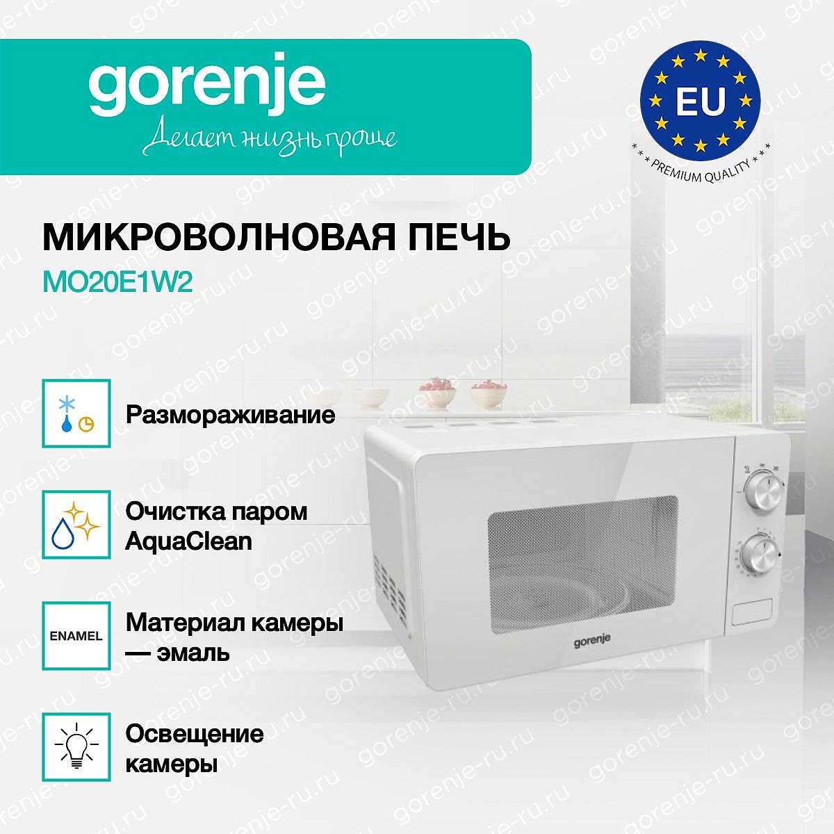 ** Все информационные материалы, представленные на Сайте, носят справочный характер и не могут в полной мере передавать достоверную информацию о свойствах, комплектации и характеристиках товара, включая цвета, размеры и формы. Фирма-производитель оставляет за собой право на внесение изменений в конструкцию, дизайн и комплектацию товара без предварительного уведомления. Перед оформлением Заказа Покупатель должен обратиться к Продавцу для уточнения свойств и характеристик Товара. Подробная информация о товаре указывается в инструкции и на упаковке товара. Используемое название в России: Горенье MO20E1W2