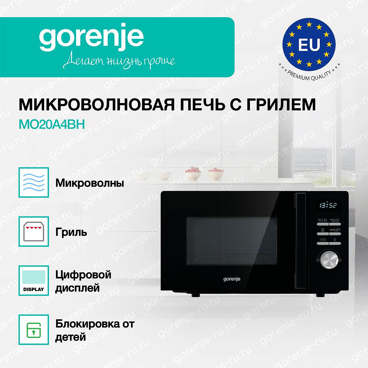 ** Все информационные материалы, представленные на Сайте, носят справочный характер и не могут в полной мере передавать достоверную информацию о свойствах, комплектации и характеристиках товара, включая цвета, размеры и формы. Фирма-производитель оставляет за собой право на внесение изменений в конструкцию, дизайн и комплектацию товара без предварительного уведомления. Перед оформлением Заказа Покупатель должен обратиться к Продавцу для уточнения свойств и характеристик Товара. Подробная информация о товаре указывается в инструкции и на упаковке товара. Используемое название в России: Горенье MO20A4BH