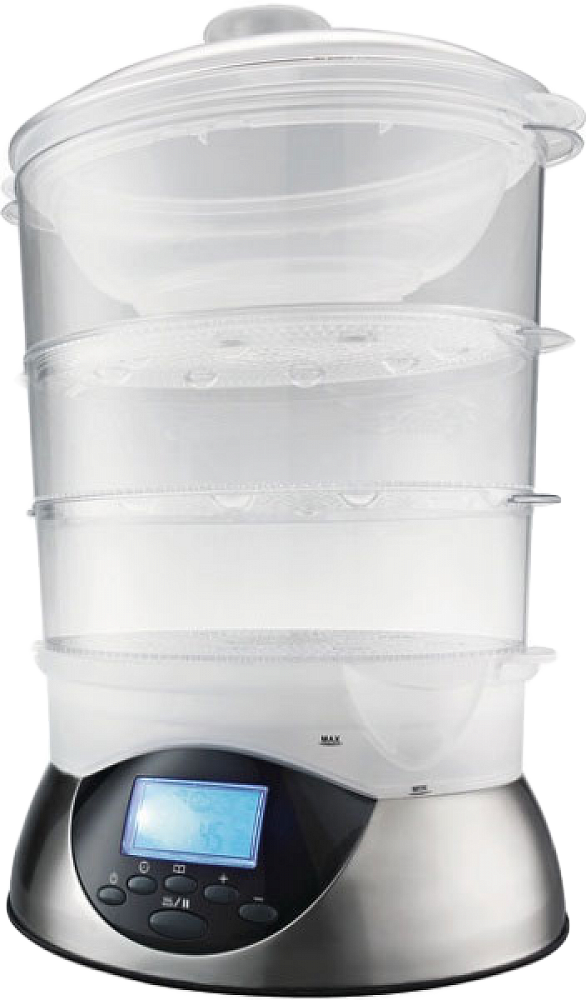 Пароварка FS 900 E оснащена функцией быстрого спуска пара. Устройство AromaPlus улучшает вкус блюд ароматами приправ и специй. 6 предустановленных программ помогают подобрать необходимый режим для каждого типа блюд. ЖК-дисплей и функция памяти делают использование пароварки удобным. Противоскользящая подставка и автоматическое отключение повышают безопасность эксплуатации. Специальный индикатор сообщит, когда необходимо произвести очистку от накипи.