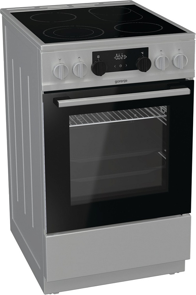 Электрическая плита Gorenje ECS5350XA сделает повседневное приготовление пищи легче, поможет начать готовить даже сложные блюда без особого труда. Панель управления включает в себя поворотные переключатели, а также сенсорный программатор IconLED с дисплеем, с которым задать нужные параметры получится гораздо проще. Доступна также возможность установки таймера, что поможет точно выдержать время приготовления, а во время простоя на дисплее отображается текущее время.