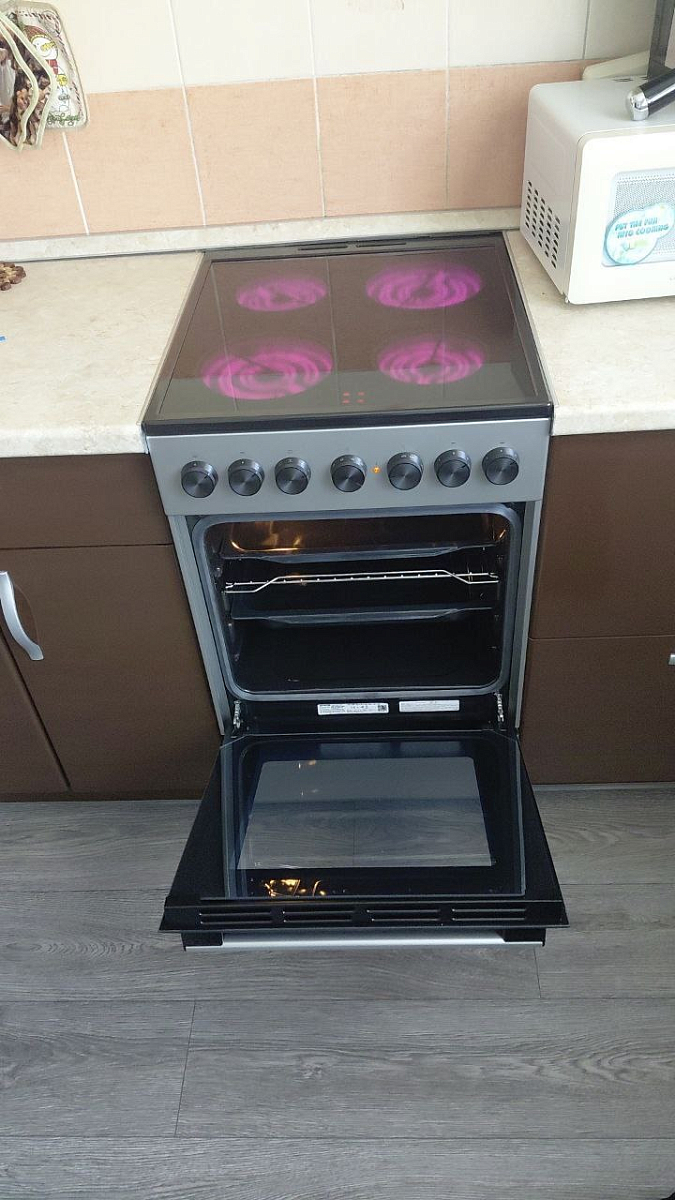 Электрическая плита выполнена в стильном сером цвете, что дает ей гармонично вписываться в любой интерьер кухни. Варочная поверхность из стеклокерамики обеспечивает равномерное распределение тепла, а также удобство в уходе. Панель управления и дверца духовки изготовлены из крашеного металла, что гарантирует долговечность и надежность. Дверца духовки дополнена стеклянной вставкой, что помогает контролировать процесс приготовления пищи. Внутреннее освещение духовки обеспечивает яркое и равномерное освещение.