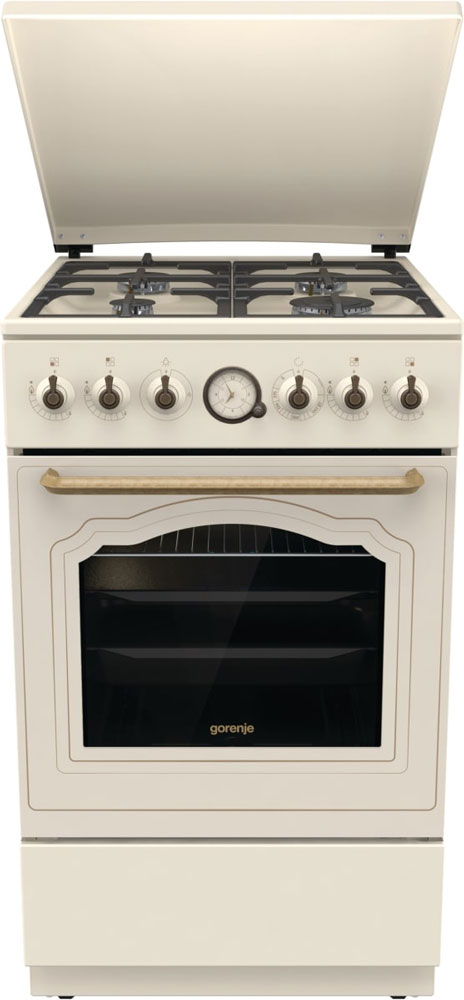 Газовая плита Gorenje GGI5BCLI выполнена в классическом светлом дизайне. Поворотные переключатели с бронзовыми ручками позволят выставить нужный режим. Имеется автоматический электроподжиг. Для того, чтобы включить плиту, достаточно слегка нажать на ручку и повернуть ее. Нагрев можно регулировать одной рукой. Пользоваться прибором просто и комфортно. Четыре конфорки разного размера предназначены для любой посуды. Изделие подходит для большой семьи, вы легко сможете готовить несколько блюд одновременно. Две чугунные решетки прочные и выдерживают даже тяжелые кастрюли. Они не ржавеют и не деформируются.