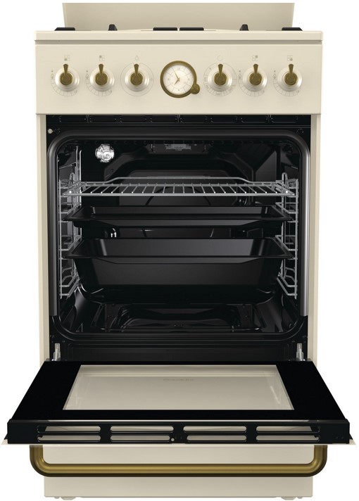 Газовая плита Gorenje GI 52 CLI относится к коллекции Classico, которая больше напоминает не классическую технику, а стиль классицизма. Об этом говорит и цвет слоновой кости, использованный для корпуса, а также фурнитура под бронзу. Кроме того, таймер выполнен под аналоговые часы, а поворотные регуляторы сделаны, подобно старинным вентилям. Сам таймер имеет кнопочное управление. С его помощью можно выставить текущее время, а также задать время приготовления, после чего раздастся сигнал.