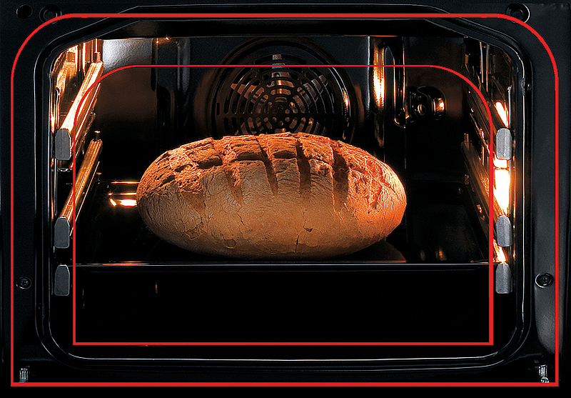 Технология HomeMADE — это использование сводчатой формы потолка. Верхняя часть духового шкафа повторяет конструкцию традиционной дровяной печи. Благодаря такому решению воздух внутри камеры свободно циркулирует. Он практически обволакивает блюдо со всех сторон. Это способствует лучшему пропеканию.