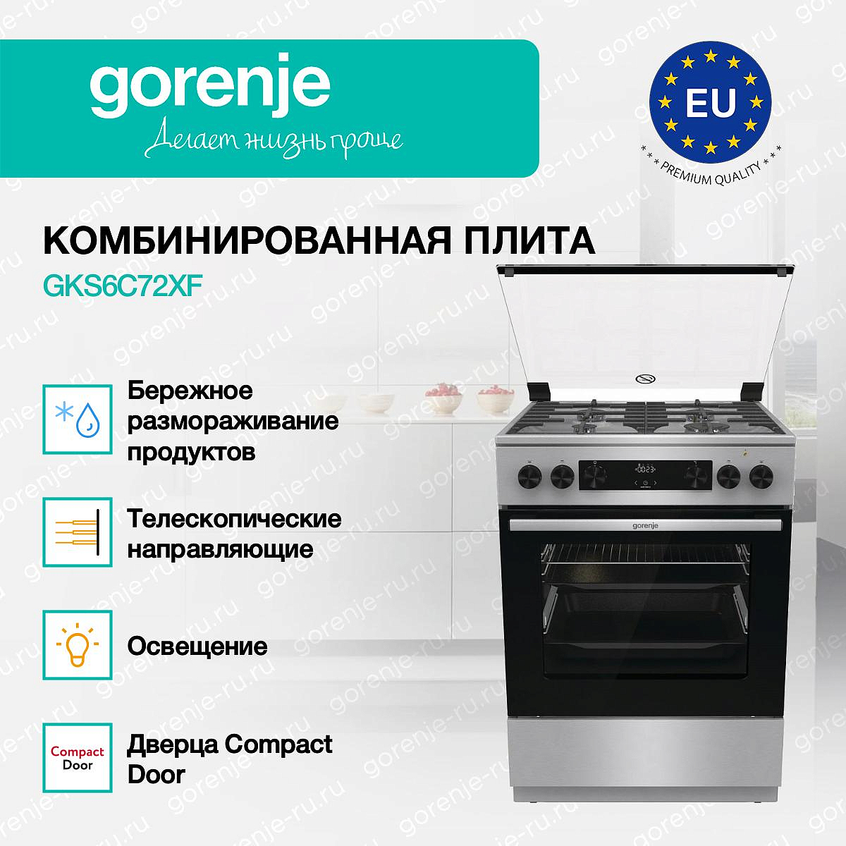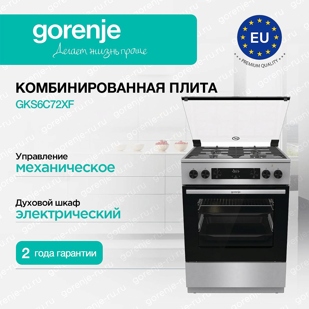 ** Все информационные материалы, представленные на Сайте, носят справочный характер и не могут в полной мере передавать достоверную информацию о свойствах, комплектации и характеристиках товара, включая цвета, размеры и формы. Фирма-производитель оставляет за собой право на внесение изменений в конструкцию, дизайн и комплектацию товара без предварительного уведомления. Перед оформлением Заказа Покупатель должен обратиться к Продавцу для уточнения свойств и характеристик Товара. Подробная информация о товаре указывается в инструкции и на упаковке товара. Используемое название в России: Горенье GKS6C72XF