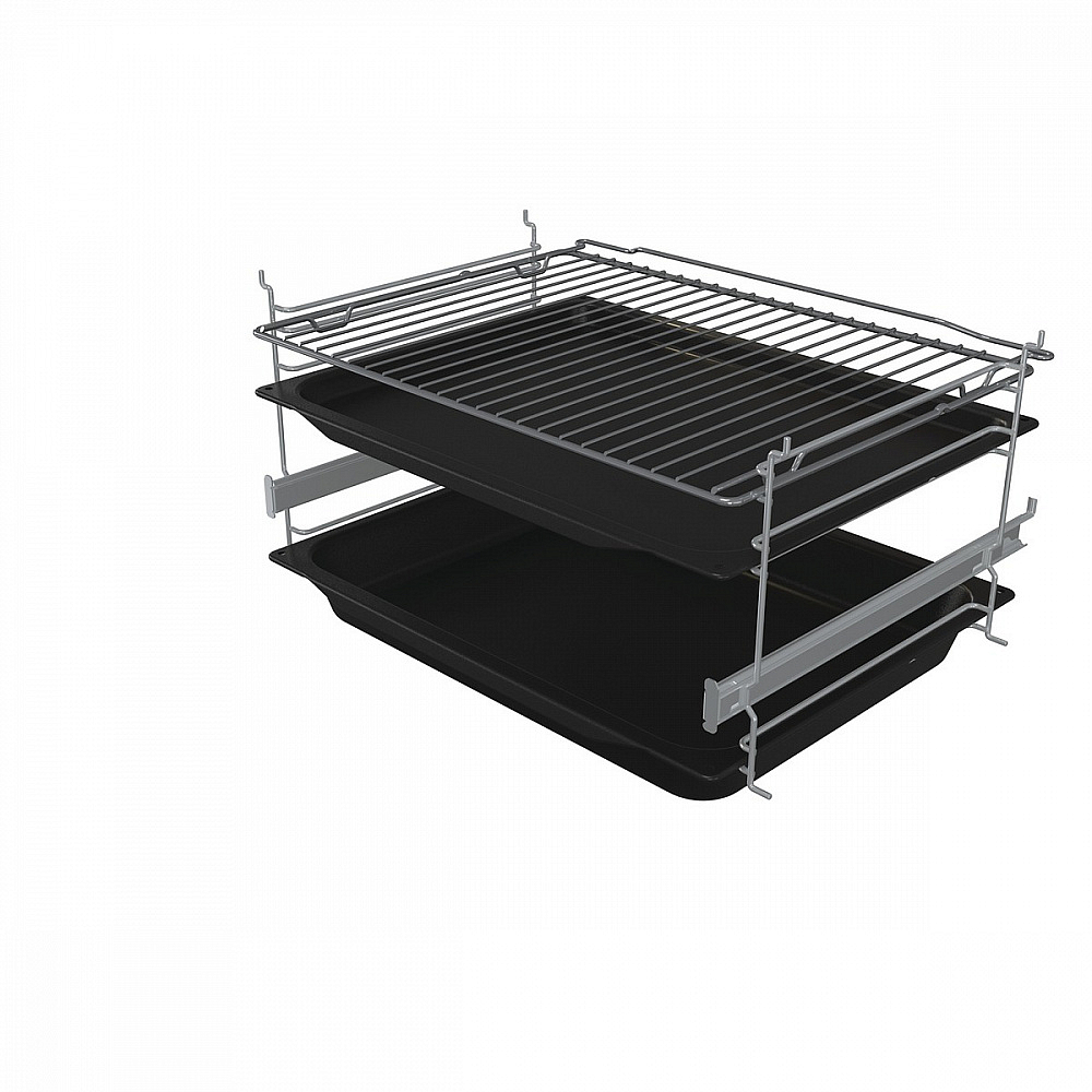 Варочная поверхность, выполненная из эмали, оснащена четырьмя газовыми конфорками, включая горелку Wok для приготовления азиатских блюд. Духовка плиты оснащена 11 функциями, что позволяет готовить разнообразные блюда. Инновационное внутреннее покрытие духовки — эмаль SilverMatte — обеспечивает равномерное распределение тепла и упрощает процесс очистки. Внутренний объем духовки составляет 71 литр, что позволяет готовить большие порции еды. Плита оснащена электронным программатором с аналоговым дисплеем и механическим управлением. Поворотные переключатели имеют эргономичную форму, что обеспечивает удобство их использования. Также в плите предусмотрен таймер, а система освещения позволяет контролировать процесс приготовления пищи.