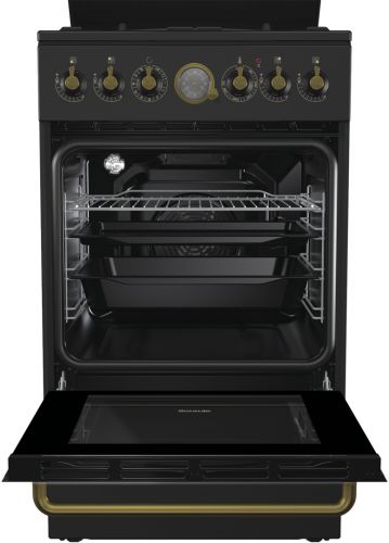 Комбинированная плита Gorenje K52CLB из коллекции Classico выполнена в черном цвете с бронзовой фурнитурой. Газовая варочная панель и многофункциональная духовка делают прибор очень комфортным и эффективным. Конфорки имеют различный размер, что удобно для приготовления в разной посуде. Духовой шкаф оснащен 11 программами, в том числе очисткой паром. Управление осуществляется при помощи эргономичных поворотных переключателей и электронного таймера, дисплей которого выполнен в форме часов.