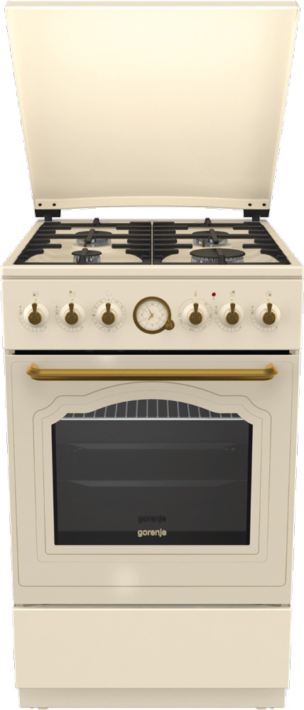 Комбинированная плита Gorenje KS5250CLI выполнена в классическом стиле. Дизайн в мягком бежевом цвете дополнен бронзированной фурнитурой. Модель состоит из варочной поверхности газового типа и электрического духового шкафа.
