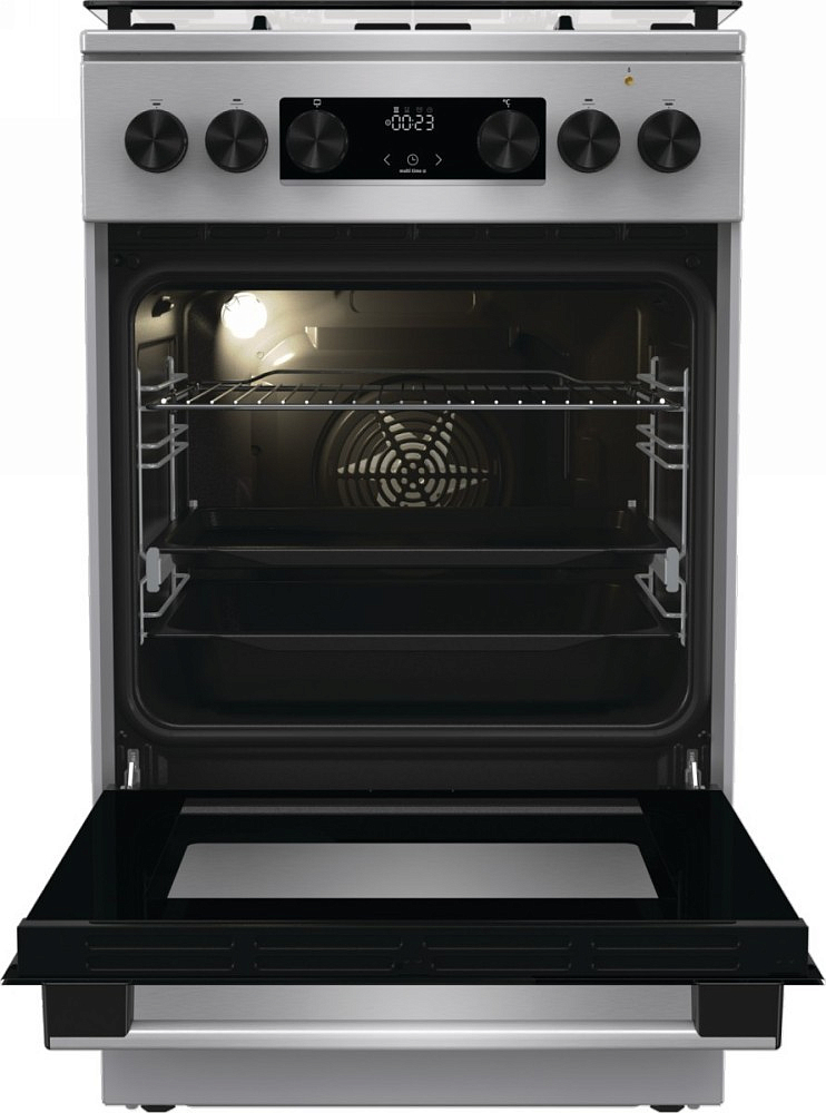 Комбинированная плита Gorenje MEKS5141X — современная модель, выполненная в цвете нержавеющей стали. Прибор имеет класс энергопотребления А. Сенсорный программатор IconLED и автоматический электроподжиг повышают комфорт эксплуатации. Очистка паром AquaClean облегчит уход за плитой. Программа ExtraSteam с использованием пара подходит для выпекания сдобных изделий, хлеба с хрустящей корочкой. Дверца духовки имеет двойное застекление с теплоотражающим защитным покрытием, поэтому к ней можно прикасаться, не опасаясь ожогов.