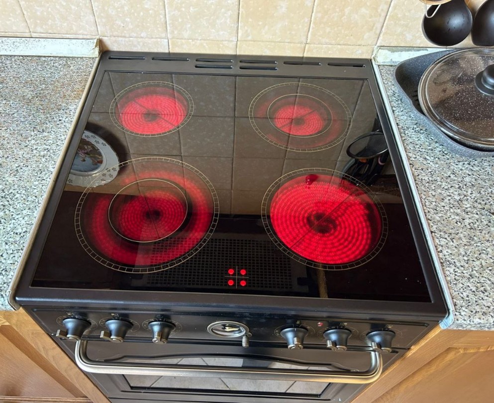 Когда плита появилась у меня на кухне, я отметила приятный внешний вид и удобство в обращении. Интерьер сразу оживился: тёмная поверхность с бронзовой фурнитурой смотрится аккуратно, но без вычурности. Управление простое, поворотные переключатели и электронный программатор понятны с первого дня, поэтому экспериментировать с рецептами стало легче. Часто пеку на выходных: пироги, запеканки и большой семейный ужин — все получается ровно, корочка равномерная, а быстрый разогрев здорово экономит время утром. Стеклокерамическая поверхность удобна в уходе — если что-то пролилось, протереть не составляет труда. Несколько раз выручала и возможность интенсивного запекания: картошка и запечённая рыба получаются с хрустящей корочкой без лишнего масла. Пару раз гости спрашивали, что за «фишка», и я с радостью показывала, как включать нужный режим. Был забавный случай: готовила пирог для соседки на день рождения, но забыла снять противень — направляющие легко вынулись, и я быстро убрала его, не испачкав духовку. Муж оценил, что блюда стали более равномерно пропекаться, а я — что уборка отнимает меньше времени. Плита оправдала мои ожидания по функциональности и дизайну и теперь надёжно помогает мне в ежедневной готовке.