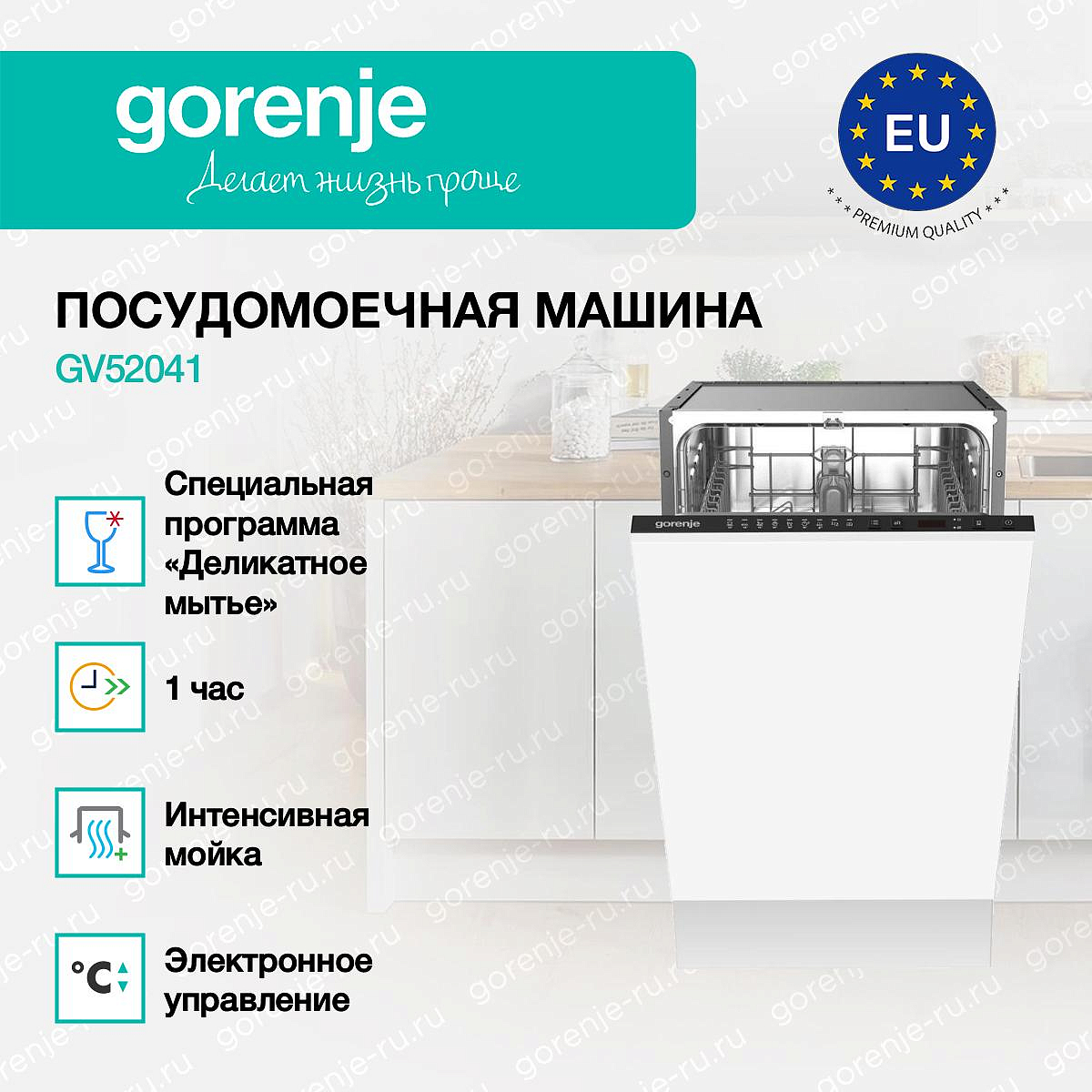 ** Все информационные материалы, представленные на Сайте, носят справочный характер и не могут в полной мере передавать достоверную информацию о свойствах, комплектации и характеристиках товара, включая цвета, размеры и формы. Фирма-производитель оставляет за собой право на внесение изменений в конструкцию, дизайн и комплектацию товара без предварительного уведомления. Перед оформлением Заказа Покупатель должен обратиться к Продавцу для уточнения свойств и характеристик Товара. Подробная информация о товаре указывается в инструкции и на упаковке товара. Используемое название в России: Горенье GV52041