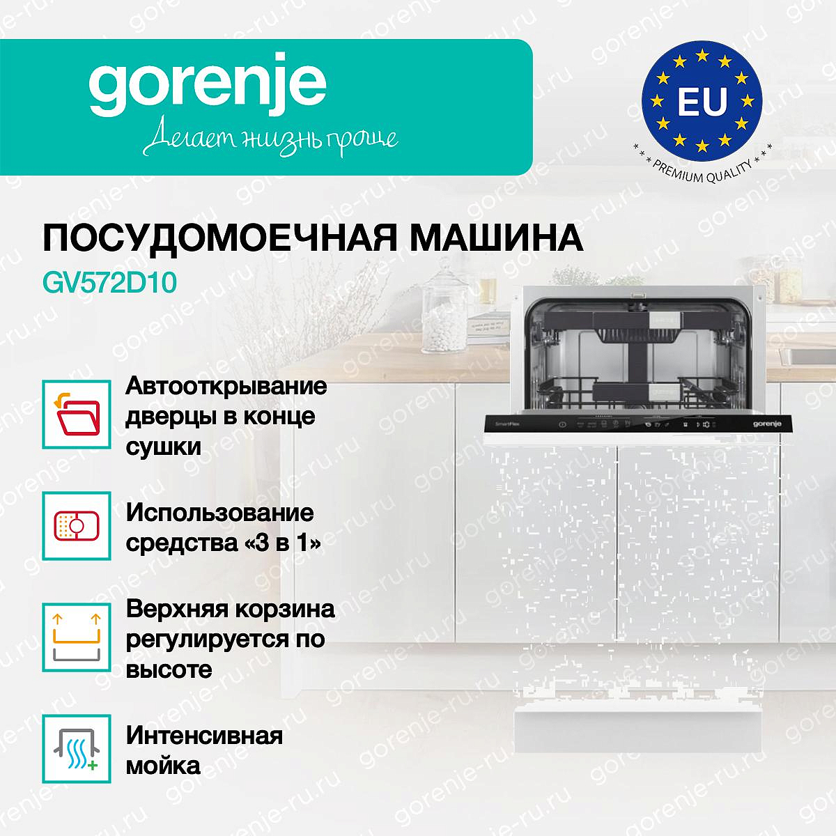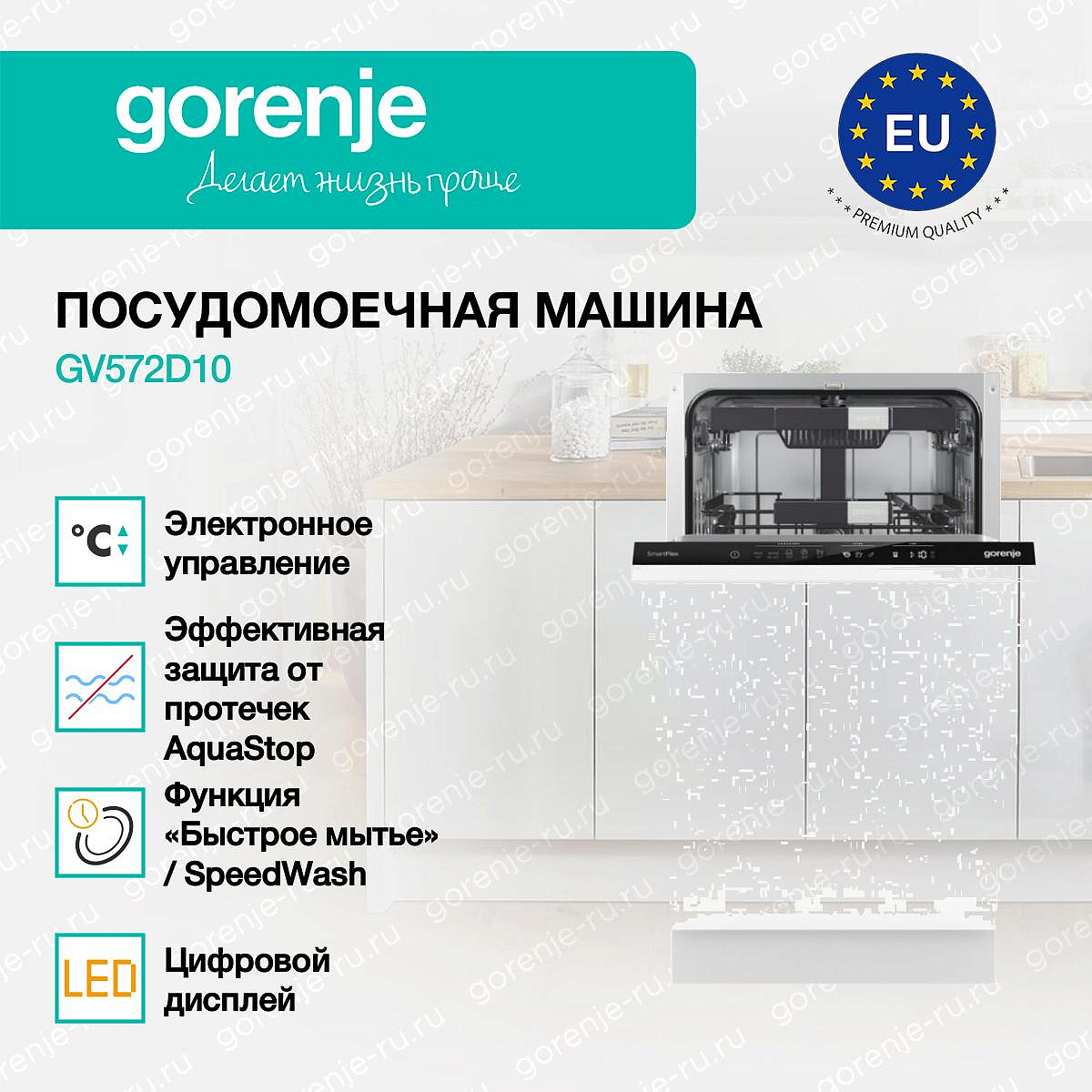 ** Все информационные материалы, представленные на Сайте, носят справочный характер и не могут в полной мере передавать достоверную информацию о свойствах, комплектации и характеристиках товара, включая цвета, размеры и формы. Фирма-производитель оставляет за собой право на внесение изменений в конструкцию, дизайн и комплектацию товара без предварительного уведомления. Перед оформлением Заказа Покупатель должен обратиться к Продавцу для уточнения свойств и характеристик Товара. Подробная информация о товаре указывается в инструкции и на упаковке товара. Используемое название в России: Горенье GV572D10