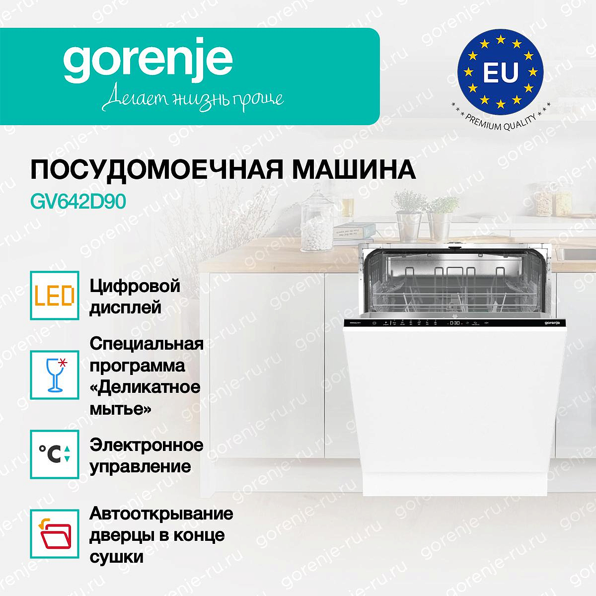 ** Все информационные материалы, представленные на Сайте, носят справочный характер и не могут в полной мере передавать достоверную информацию о свойствах, комплектации и характеристиках товара, включая цвета, размеры и формы. Фирма-производитель оставляет за собой право на внесение изменений в конструкцию, дизайн и комплектацию товара без предварительного уведомления. Перед оформлением Заказа Покупатель должен обратиться к Продавцу для уточнения свойств и характеристик Товара. Подробная информация о товаре указывается в инструкции и на упаковке товара. Используемое название в России: Горенье GV642D90