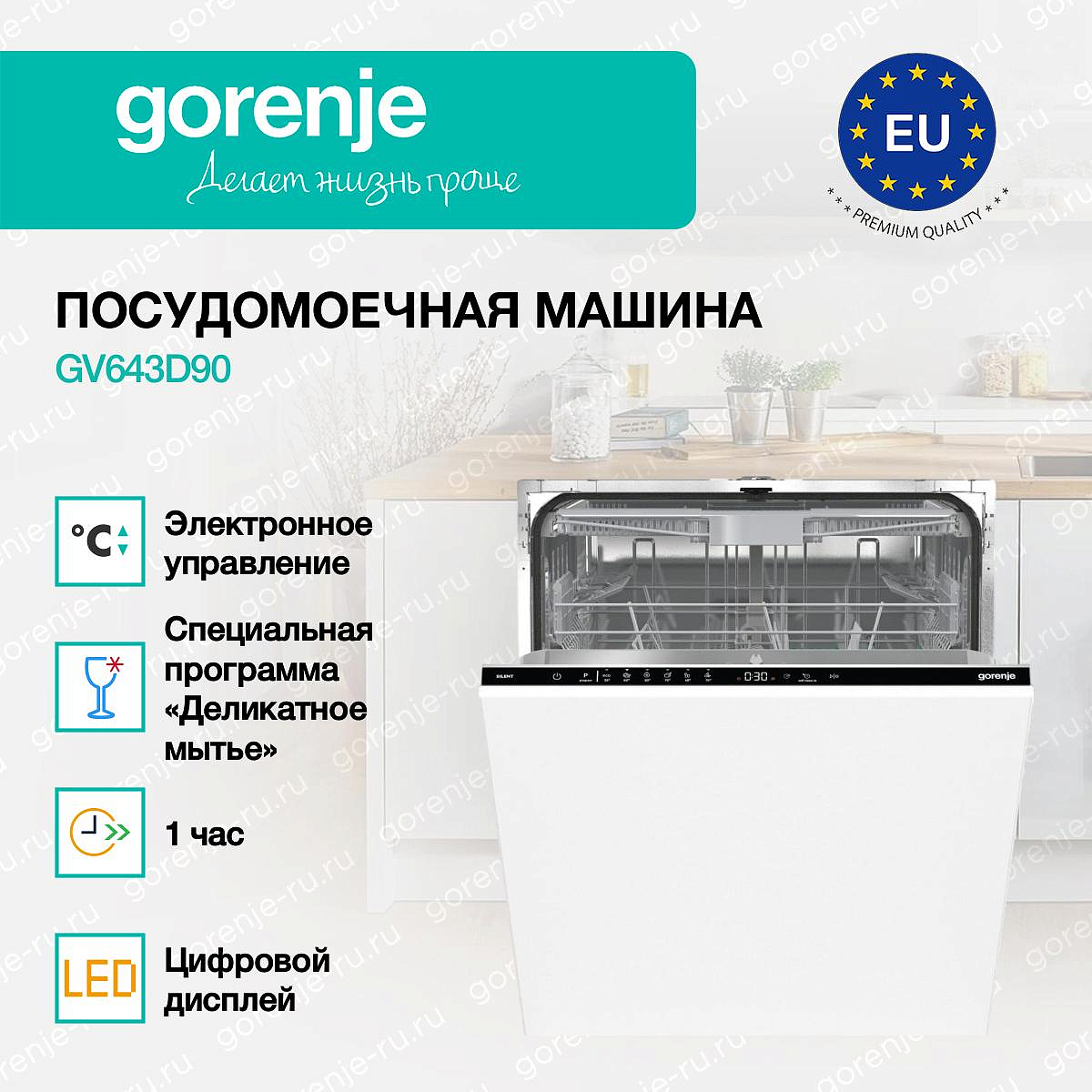 Встраиваемая посудомоечная машина Gorenje GV643D90 представляет собой идеальное решение для современной кухни, где важны не только функциональность, но и эстетическая гармония интерьера. Модель сочетает передовые технологии мойки, энергоэффективность класса А+++ и продуманную конструкцию, позволяющую полностью интегрировать устройство в кухонный гарнитур. С вместимостью до 14 комплектов посуды машина легко справляется с объёмами средней и большой семьи, обеспечивая безупречную чистоту даже самых сложных загрязнений. Инверторный мотор PowerDrive гарантирует тихую работу (всего 44 дБ) и долговечность эксплуатации, а система сушки TotalDry с автоматическим открыванием дверцы обеспечивает идеальное высыхание посуды без разводов и капель. Благодаря возможности подключения к горячей воде до 60°С модель дополнительно экономит электроэнергию, сокращая время нагрева. Как официальный дилер Gorenje, мы гарантируем подлинность продукции и предоставляем полную сервисную поддержку для вашей техники.
