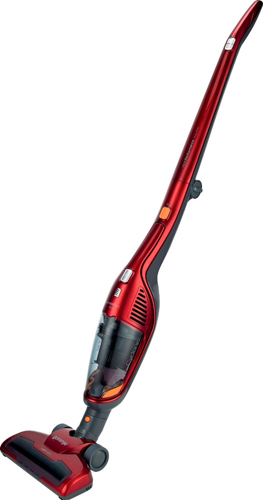 Пылесос Gorenje SVC216FR — роскошная беспроводная вакуумная красная модель, которая может быть как вертикальной, так и ручной, что значительно расширяет варианты использования и упрощает уборку. Благодаря складной ручке она компактна и не занимает много места во время простоя, а контейнер для сбора пыли отличается легкой очисткой. Прибор работает от аккумулятора Li-ion, что гарантирует максимальную маневренность и отсутствие мешающих проводов. В комплекте предусмотрена зарядная база, а на ручке — индикатор зарядки, позволяющий определить насколько ее хватит. Полностью заряженный аккумулятор обеспечивает бесперебойную работу в течение часа — этого хватит для уборки даже большого помещения, а зарядить его заново займет всего 6 часов.