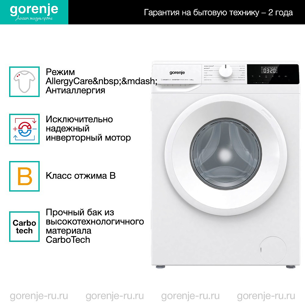 Встречайте cтиральную машину Gorenje W1NHPI60SCS – идеальное сочетание функциональности, элегантности и качества. Эта модель, выполненная в классическом белом цвете, станет гармоничным дополнением для любого интерьера. Белый цвет загрузочного люка подчеркивает цельность и стиль дизайна, а фронтальная загрузка обеспечивает удобство использования и дает экономить пространство в помещении. Прибор Gorenje W1NHPI60SCS оснащена барабаном объемом 43 литра, что дает загружать до 6 кг хлопка за один цикл стирки. Это идеальный вариант для средних и больших семей, где стирка происходит регулярно и в больших объемах. Максимальная скорость отжима в этой устройства составляет 1000 оборотов в минуту. Это гарантирует эффективное удаление влаги из одежды, сокращая время, необходимое для ее сушки. Мы являемся официальным дилером бренда Gorenje и гарантируем высокое качество представленной продукции. В следующих разделах вы найдете более подробную информацию о функциях и особенностях стиральной машины Gorenje W1NHPI60SCS, которые делают ее незаменимым помощником в быту.