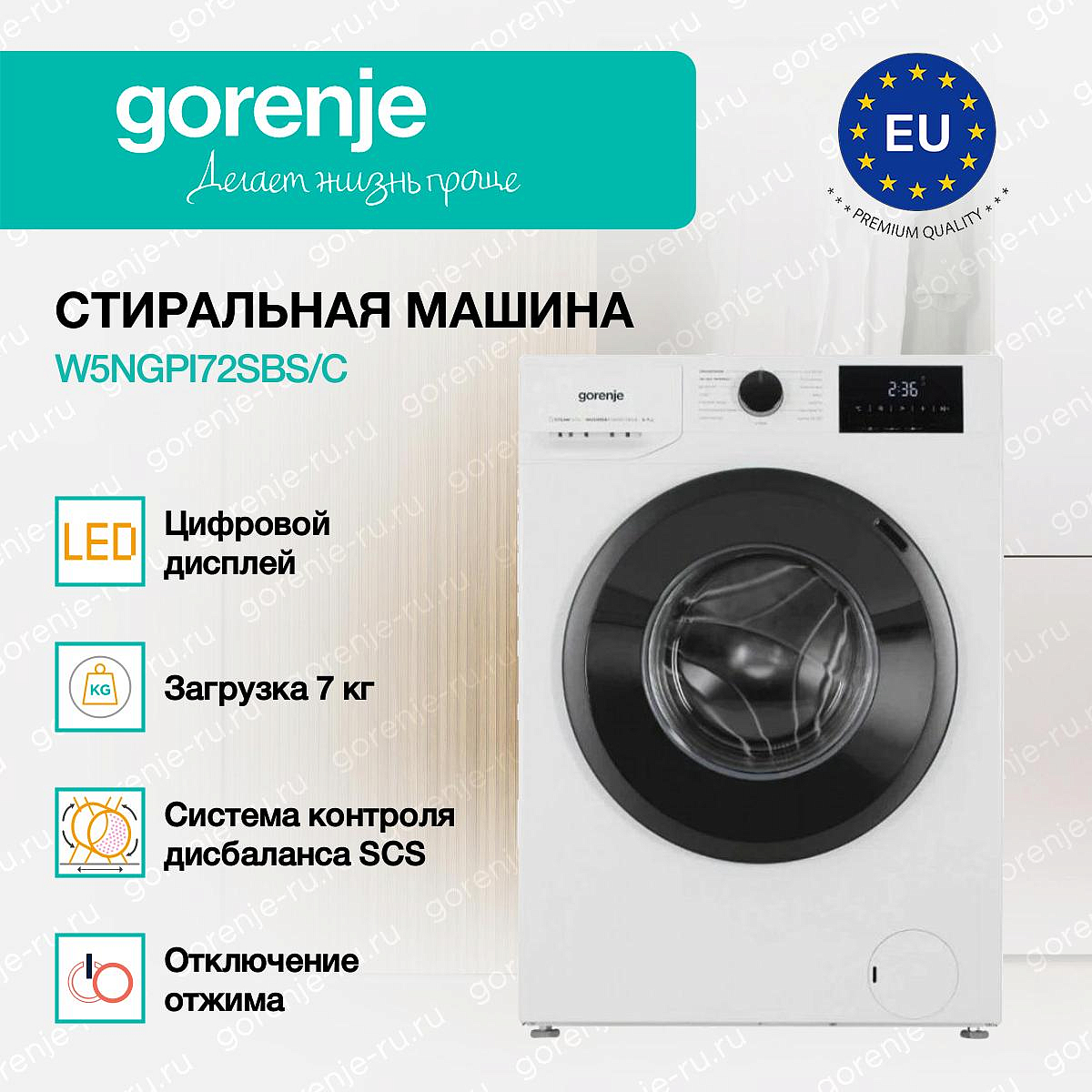 ** Все информационные материалы, представленные на Сайте, носят справочный характер и не могут в полной мере передавать достоверную информацию о свойствах, комплектации и характеристиках товара, включая цвета, размеры и формы. Фирма-производитель оставляет за собой право на внесение изменений в конструкцию, дизайн и комплектацию товара без предварительного уведомления. Перед оформлением Заказа Покупатель должен обратиться к Продавцу для уточнения свойств и характеристик Товара. Подробная информация о товаре указывается в инструкции и на упаковке товара. Используемое название в России: Горенье W5NGPI72SBS/C