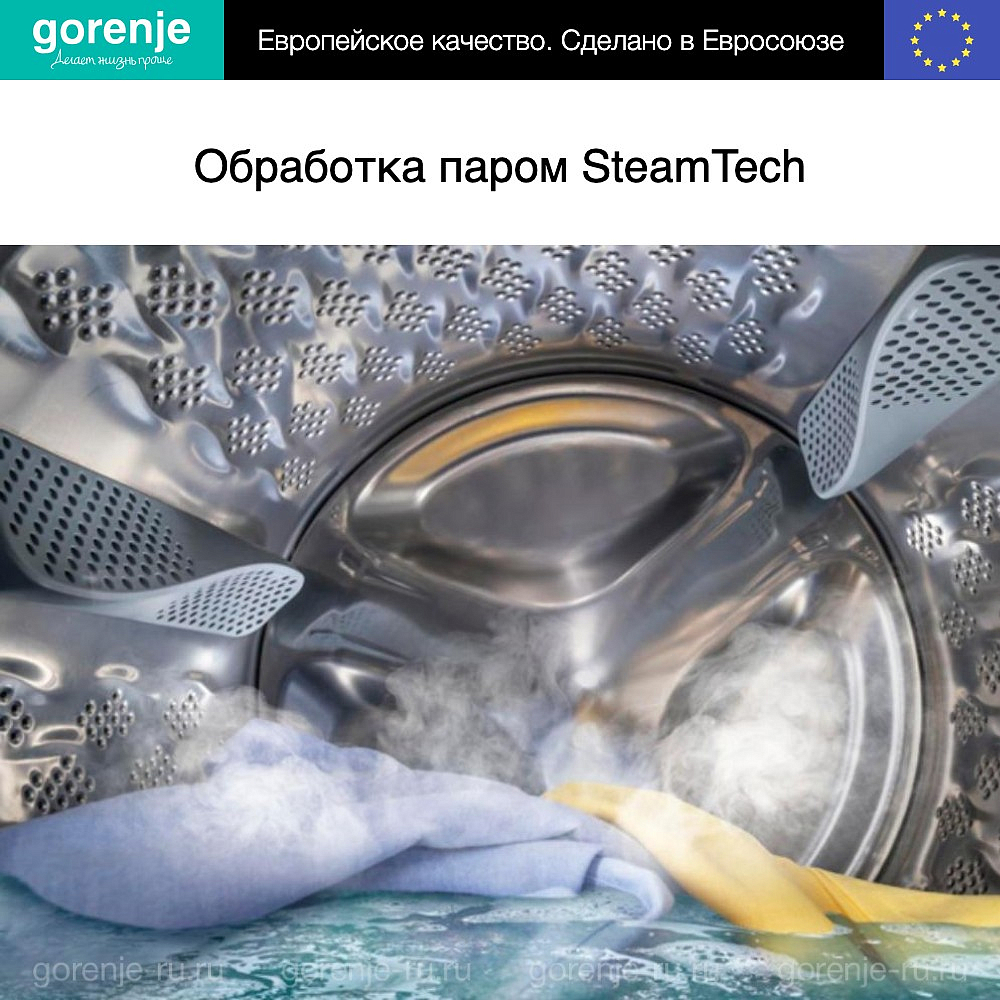 Понравилась и функция обработки паром SteamTech. Благодаря ей белье становится более мягким и свежим, а многие загрязнения удаляются без применения химических средств.