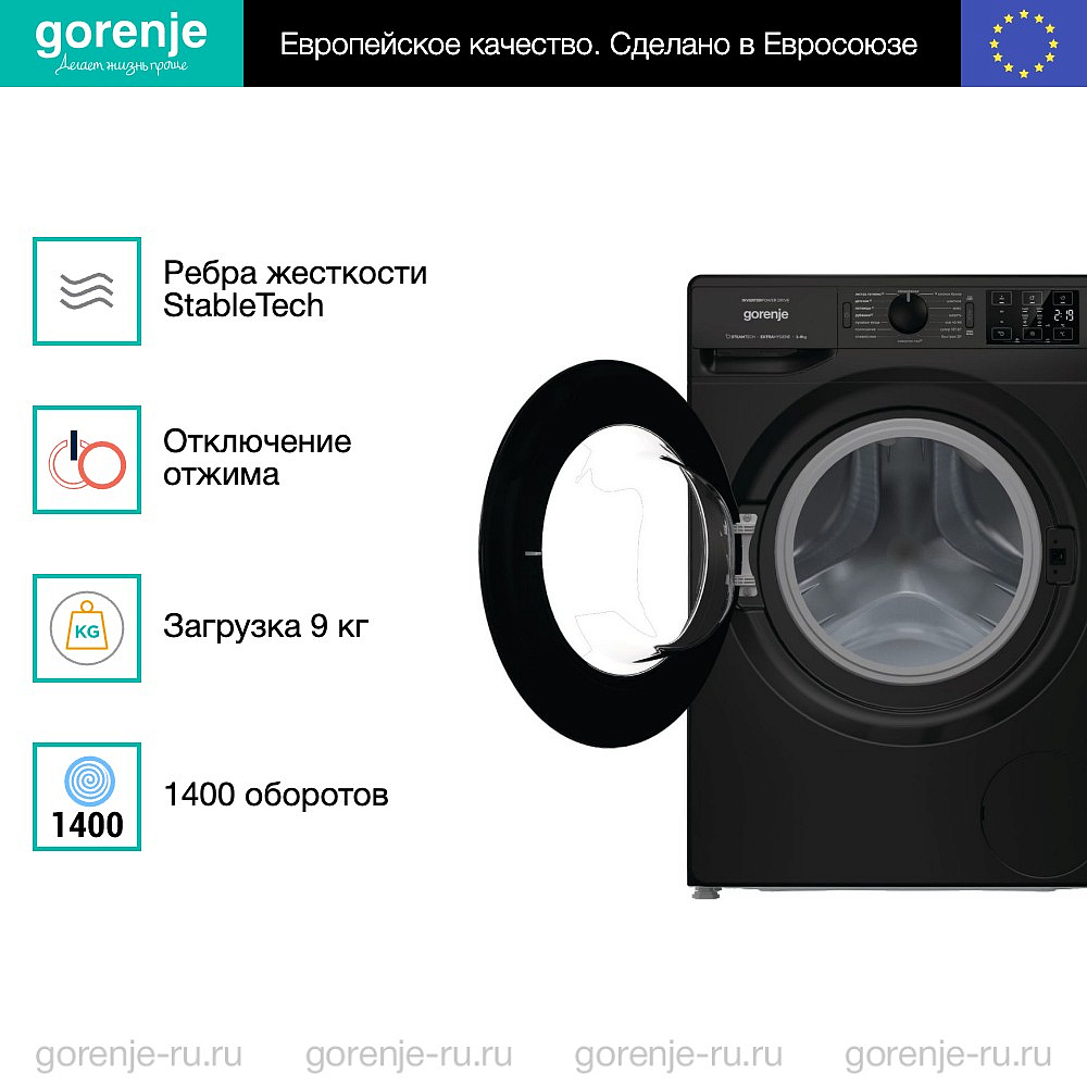 ** Все информационные материалы, представленные на Сайте, носят справочный характер и не могут в полной мере передавать достоверную информацию о свойствах, комплектации и характеристиках товара, включая цвета, размеры и формы. Фирма-производитель оставляет за собой право на внесение изменений в конструкцию, дизайн и комплектацию товара без предварительного уведомления. Перед оформлением Заказа Покупатель должен обратиться к Продавцу для уточнения свойств и характеристик Товара. Подробная информация о товаре указывается в инструкции и на упаковке товара. Используемое название в России: Горенье WNEI94AS/BCIS