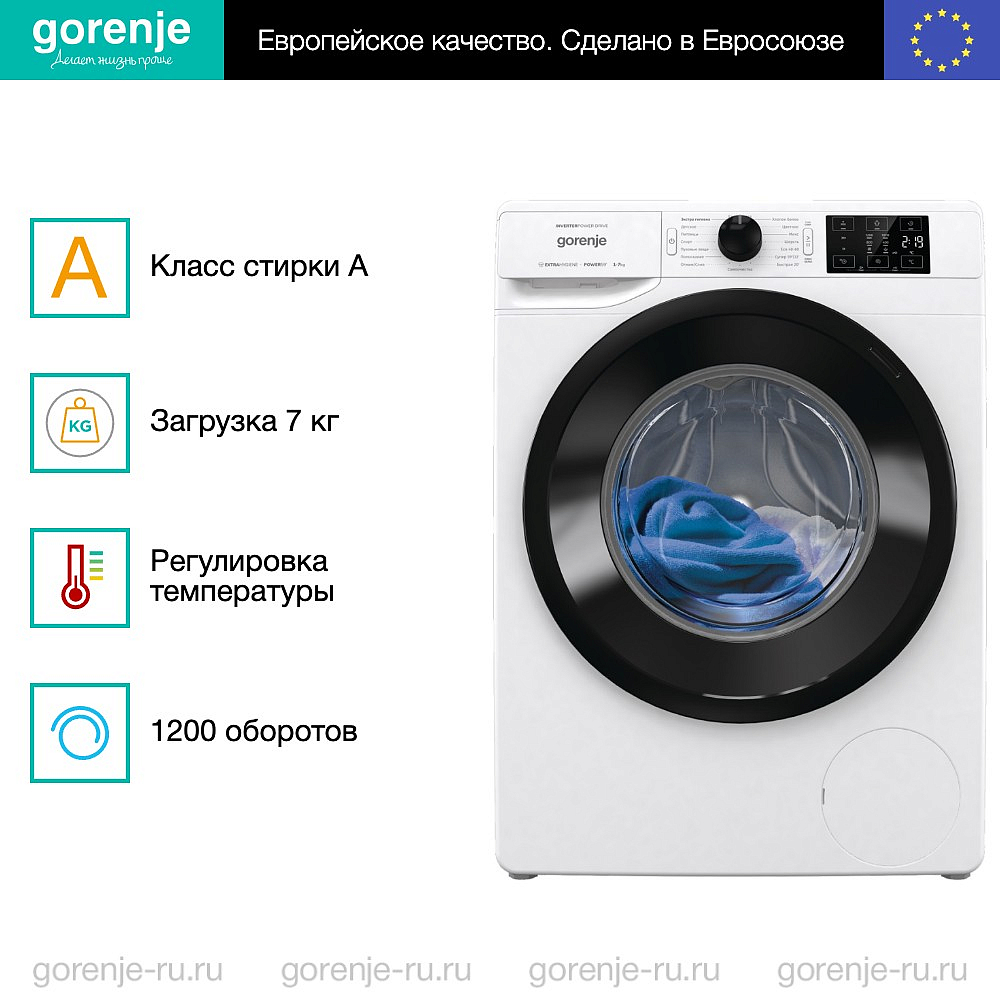 Стиральная машина Gorenje WNEI72SB — это практичная и функциональная модель, которая возьмет на себя все заботы о стирке и сделает это качественно. Инверторный мотор PowerDrive отличается тихой работой, высокой скоростью вращения барабана и низким энергопотреблением, вот почему прибор имеет класс энергоэффективности А+++. Кроме того, поскольку такой двигатель является бесщеточным, вероятность поломки значительно ниже, чем у обычного, а срок службы — намного дольше. Барабан WaveActiv имеет волнообразную форму, которая позволяет бережно, но эффективно отстирывать даже самые деликатные ткани.