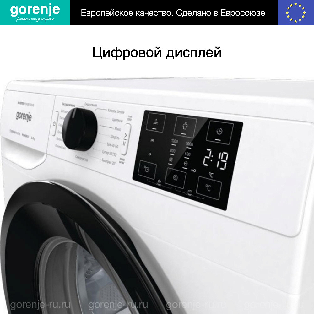 Горенье WNEI72SB отличается современным дизайном в линии Essential, что делает ее стильным дополнением к любому интерьеру. Белый цвет корпуса и черный загрузочный люк создают контрастный и элегантный образ. Фронтальная загрузка обеспечивает удобство эксплуатация, а максимальная загрузка в 7 кг дает стирать достаточно большое количество белья за один раз. Максимальное количество оборотов отжима составляет 1200 об./мин., что гарантирует эффективное удаление влаги и сокращает время сушки белья после стирки. Объем барабана в 49 литров обеспечивает достаточно места для белья различных размеров и типов ткани.