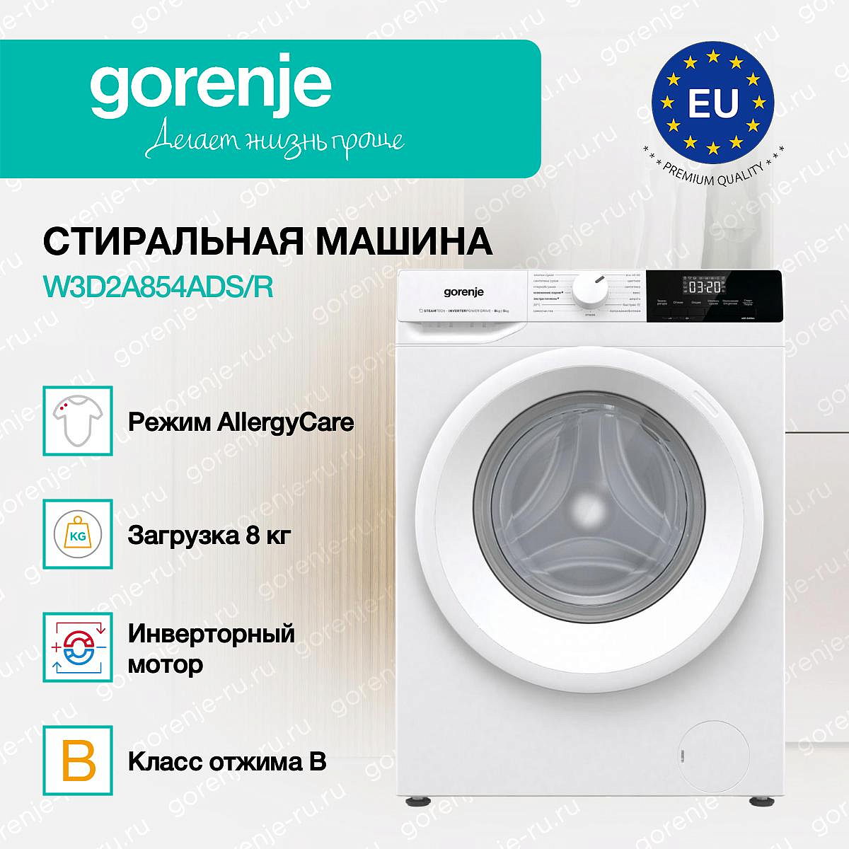 ** Все информационные материалы, представленные на Сайте, носят справочный характер и не могут в полной мере передавать достоверную информацию о свойствах, комплектации и характеристиках товара, включая цвета, размеры и формы. Фирма-производитель оставляет за собой право на внесение изменений в конструкцию, дизайн и комплектацию товара без предварительного уведомления. Перед оформлением Заказа Покупатель должен обратиться к Продавцу для уточнения свойств и характеристик Товара. Подробная информация о товаре указывается в инструкции и на упаковке товара. Используемое название в России: Горенье W3D2A854ADS/R