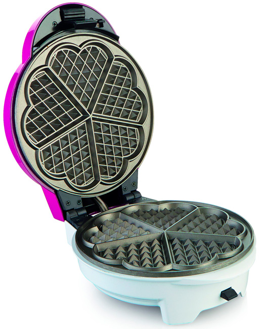 Вафельница имеет съемные взаимозаменяемые панели для приготовления, одна из которых предназначена для выпекания одновременно 5 вафель-сердечек, а другая для 7 мини-кексов. Диаметр рабочей поверхности составляет 20 см.