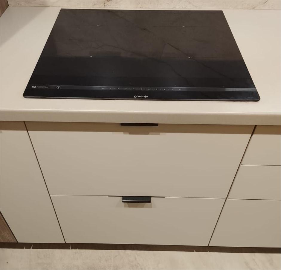 Стеклокерамическая поверхность имеет гладкую и ровную текстуру, которая не только придает панели стильный внешний вид, но и делает её удобной в уходе. Она устойчива к высоким температурам, что позволяет быстро нагревать посуду, обеспечивая равномерное распределение тепла. Стеклокерамика обладает высокой прочностью, хотя и требует аккуратного обращения с тяжелыми предметами. Такая поверхность придаёт кухне современный и элегантный вид, легко интегрируясь в различные стили интерьера.