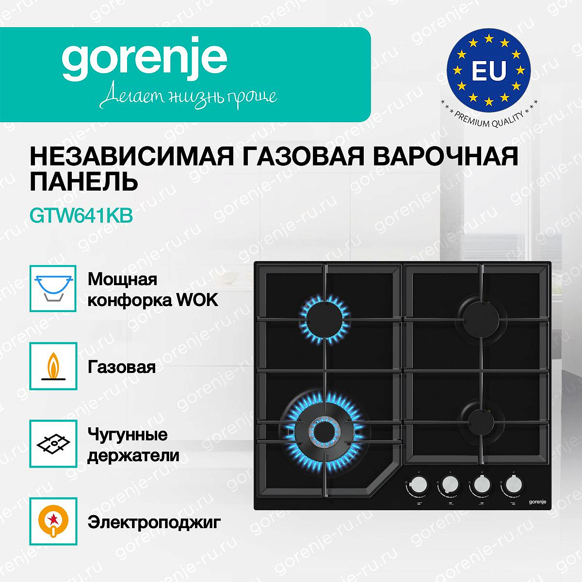 ** Все информационные материалы, представленные на Сайте, носят справочный характер и не могут в полной мере передавать достоверную информацию о свойствах, комплектации и характеристиках товара, включая цвета, размеры и формы. Фирма-производитель оставляет за собой право на внесение изменений в конструкцию, дизайн и комплектацию товара без предварительного уведомления. Перед оформлением Заказа Покупатель должен обратиться к Продавцу для уточнения свойств и характеристик Товара. Подробная информация о товаре указывается в инструкции и на упаковке товара. Используемое название в России: Горенье GTW641KB